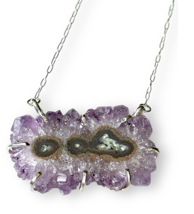 Amethyst stalactite slice, Sterling silver
