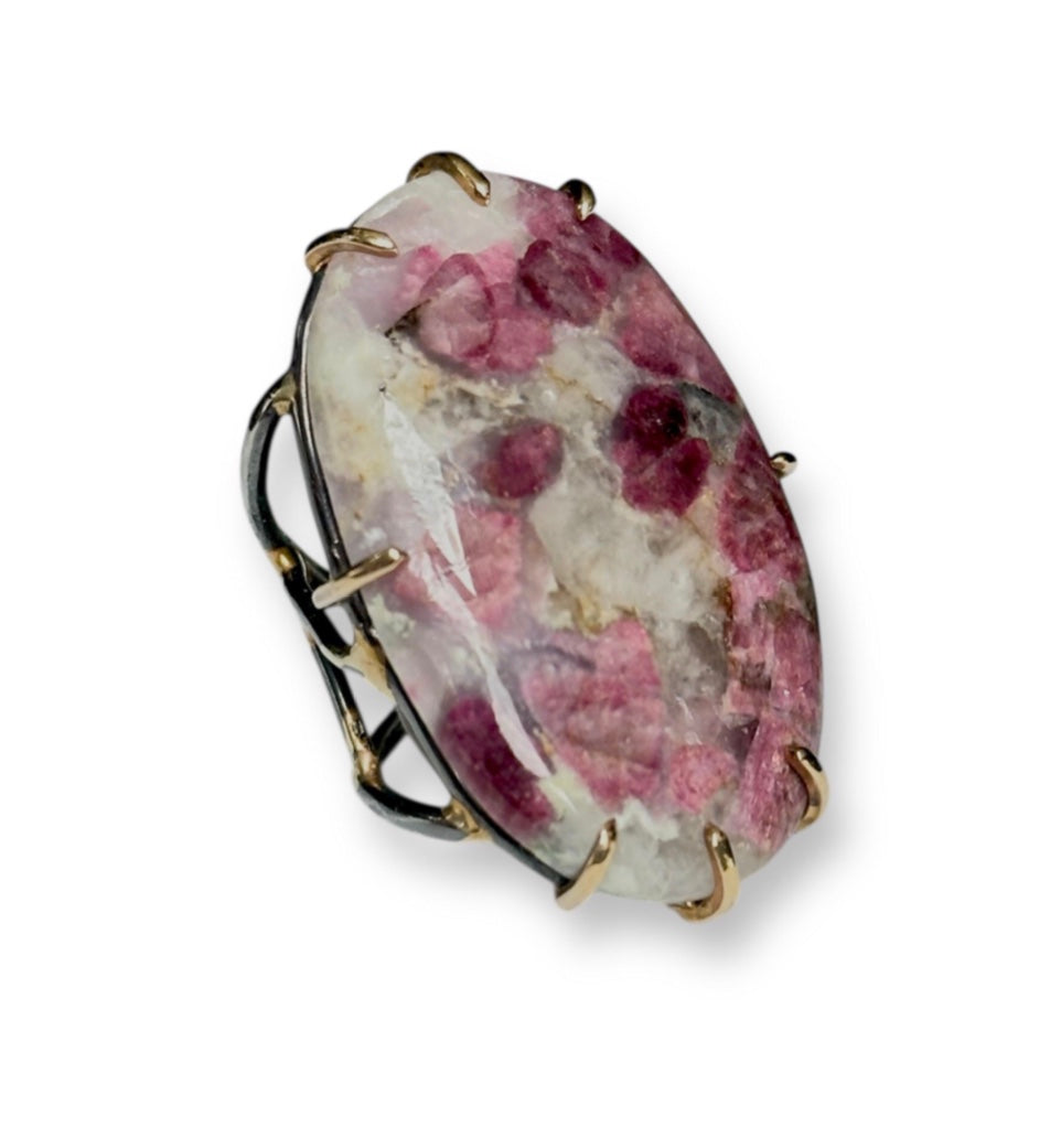 Pink tourmaline in matrix, 14k gold, oxidized Sterling Silver