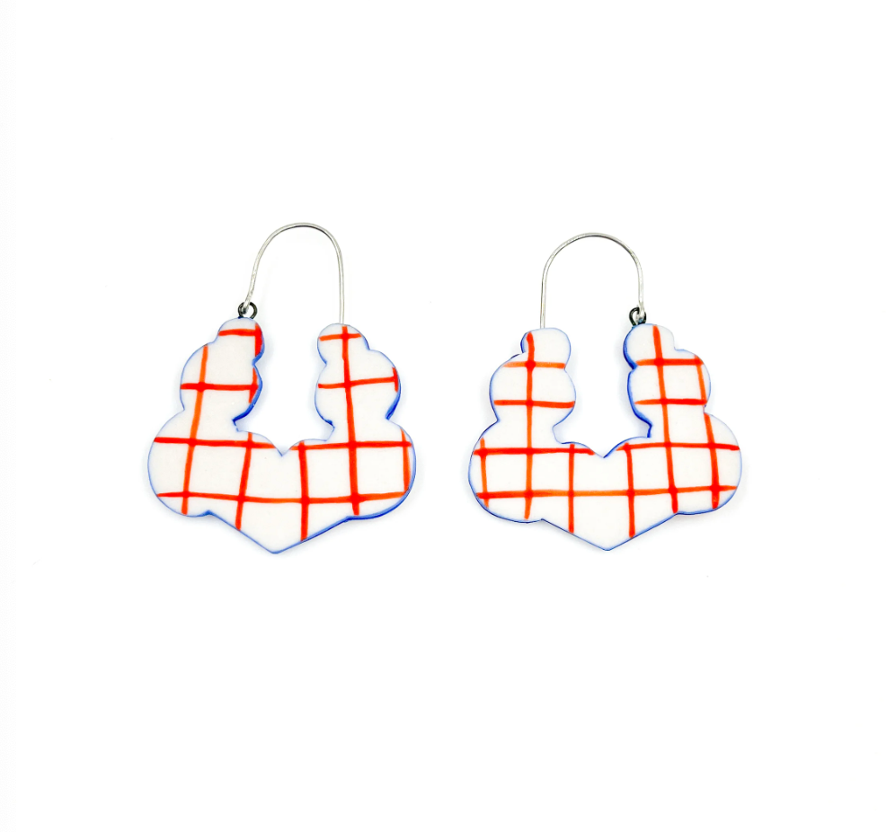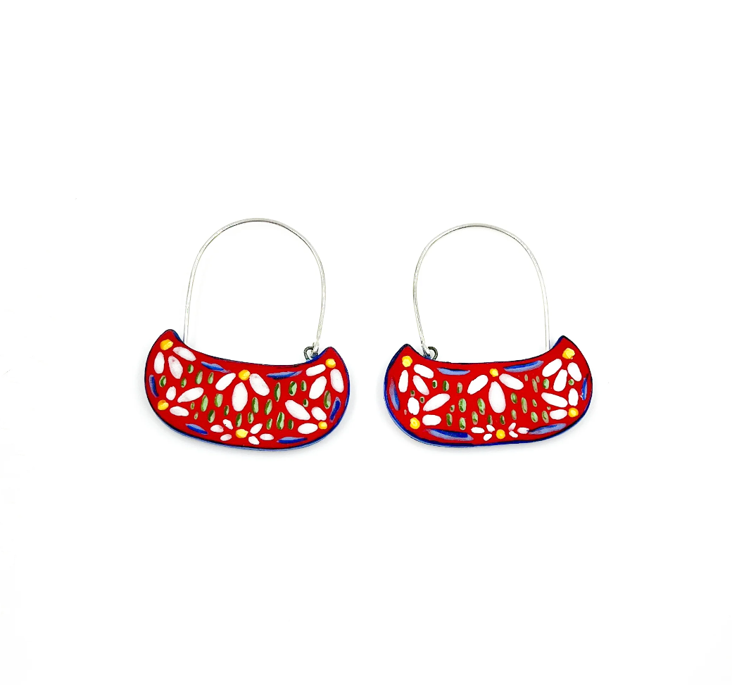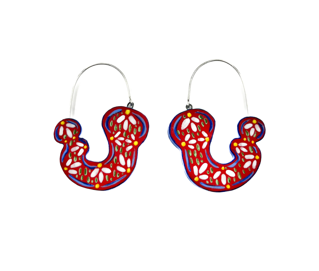 April Felipe Red Floral Four Bunnies Hoop Earrings