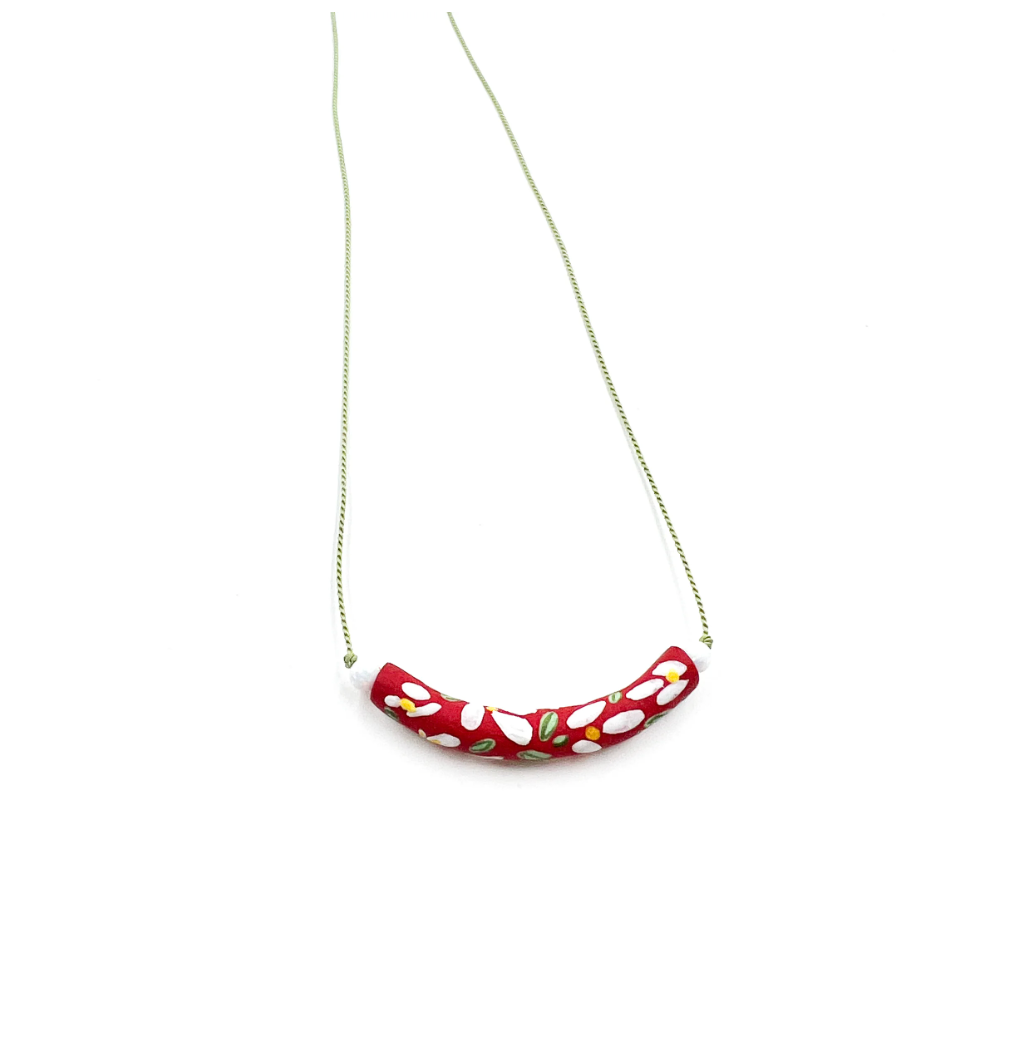 April Felipe Red Floral Tube with Opal on Green Cord Necklace