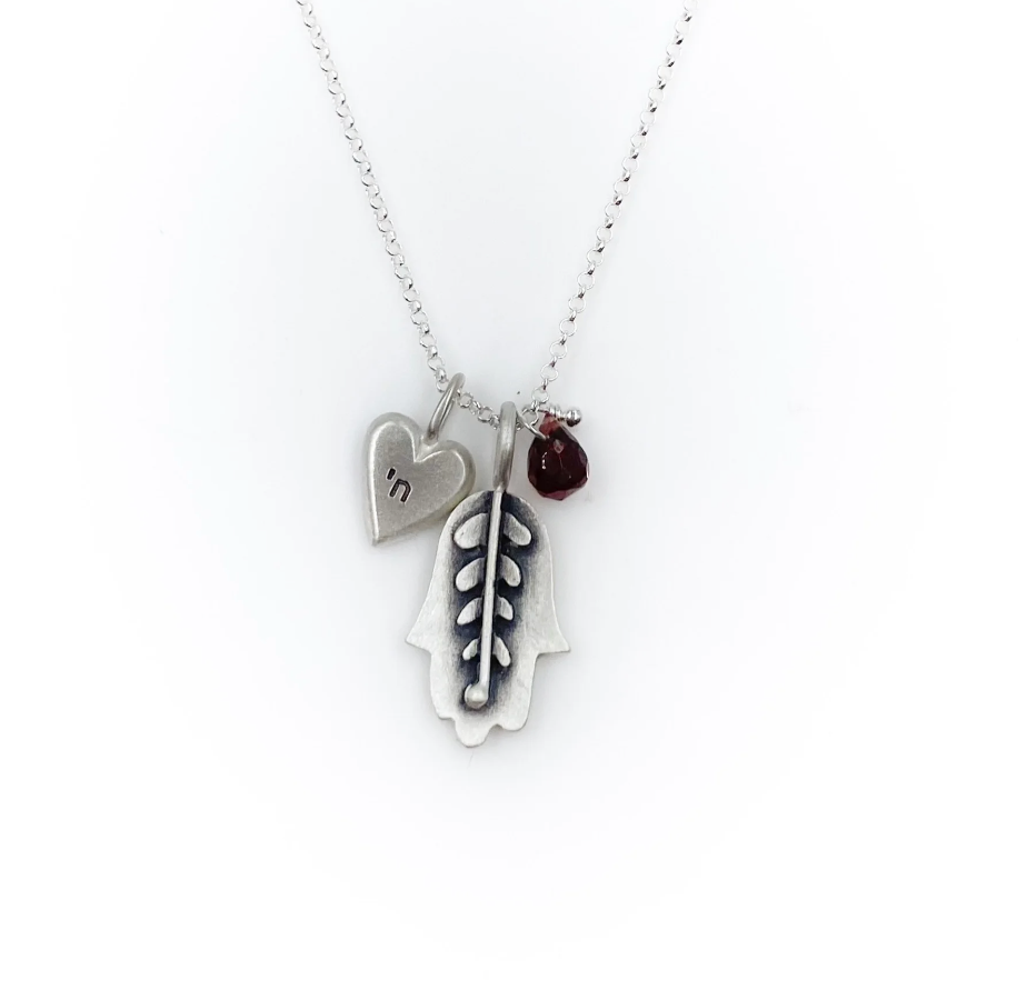 Emily Rosenfeld Botanical Hamsa Necklace with Garnet