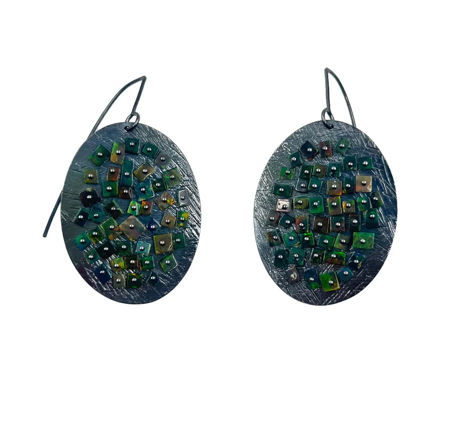 Heather Guidero Carved Oval Mosaic Black Opal Earrings