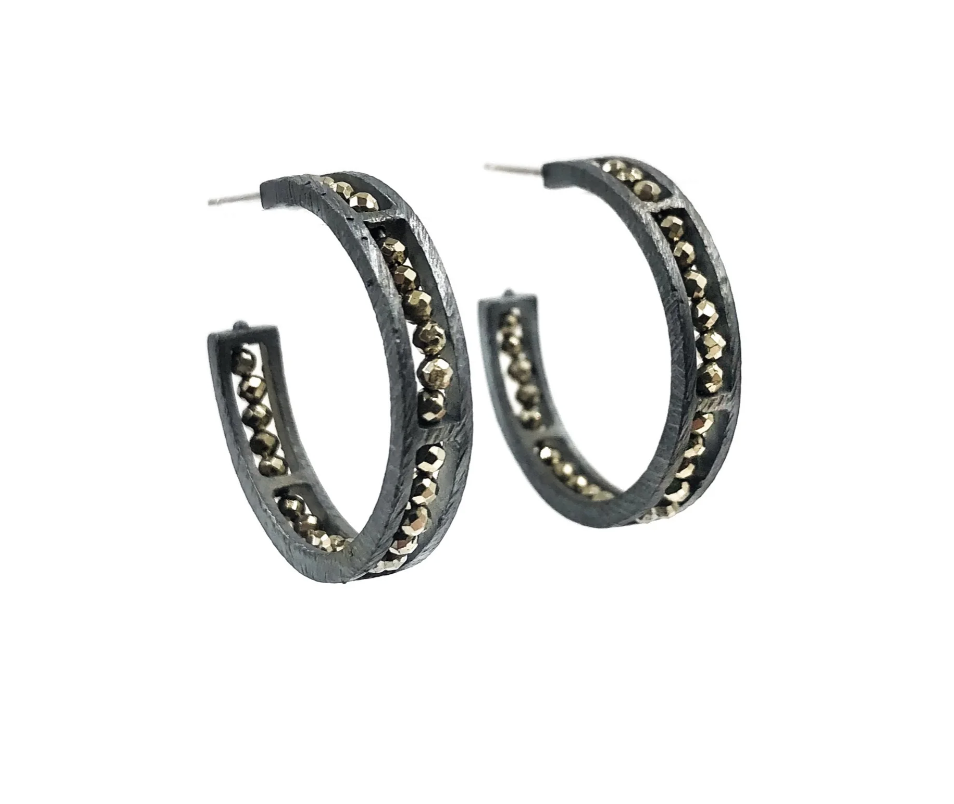 Heather Guidero Carved Pyrite Hoop Earrings