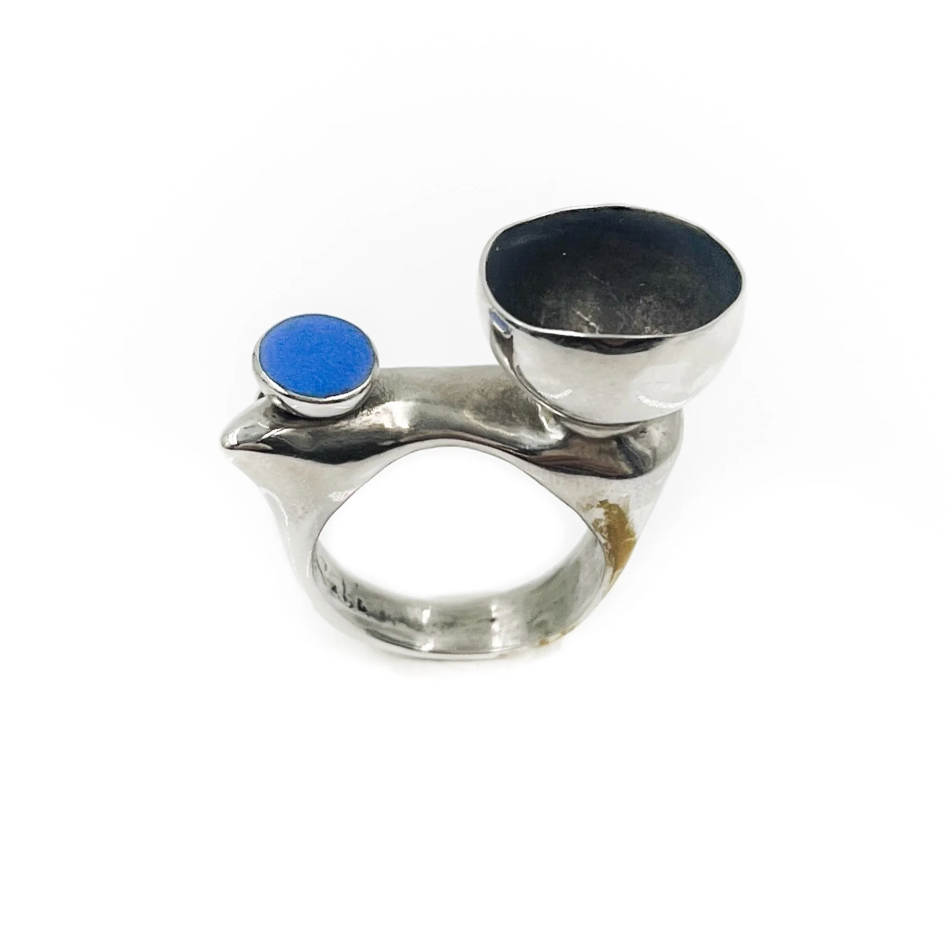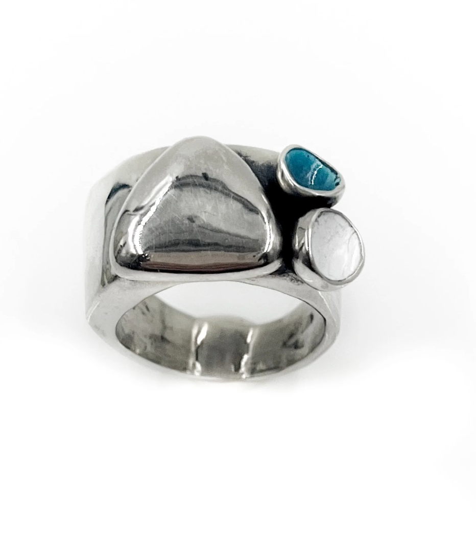 Michel McNabb Triangle Ring with Turquoise and White Cups