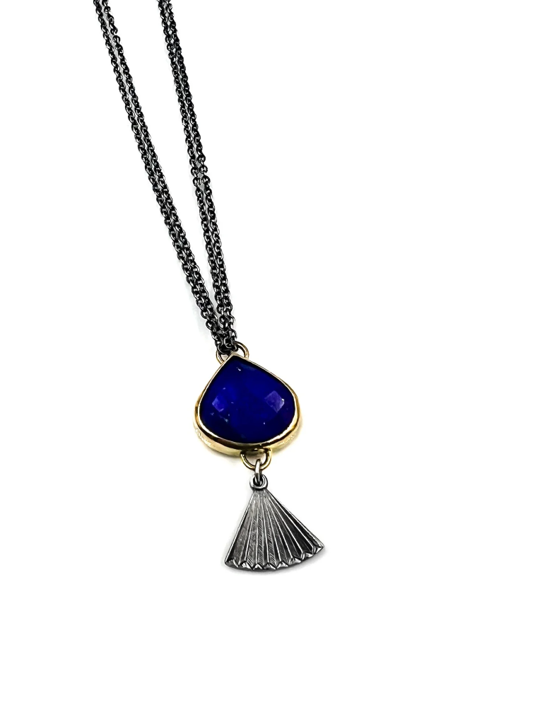 Amelia Toelke Lapis and Silver Fan Pendant Necklace