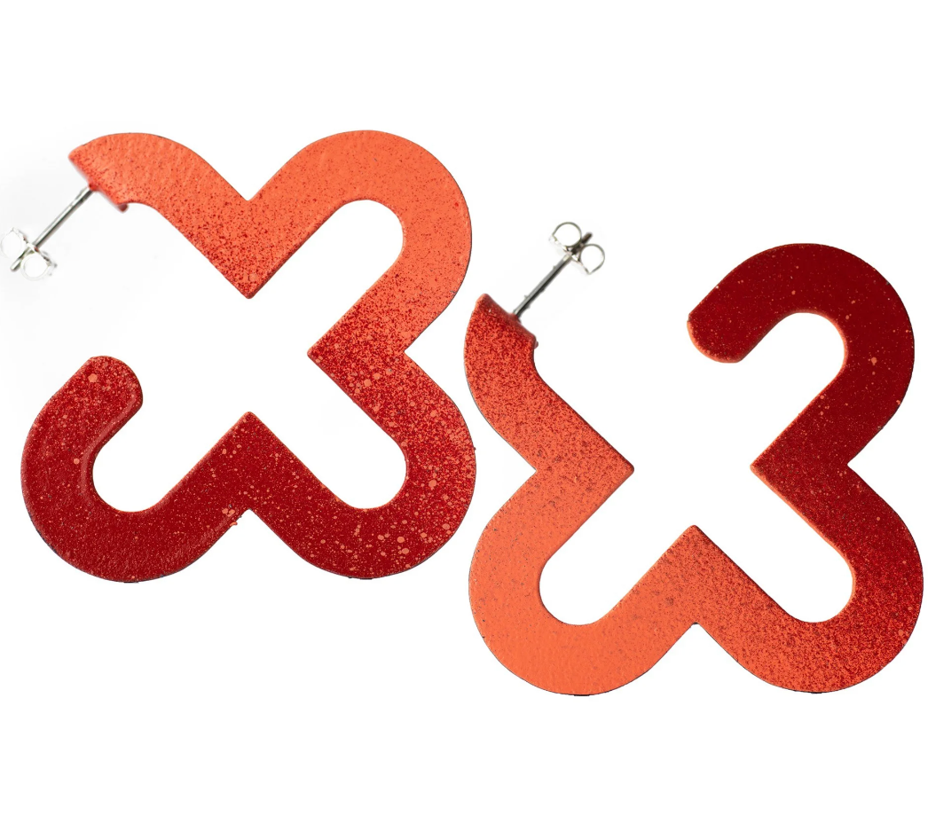 Ben Cooke-Akaiwa Red Small X Hoop Earrings
