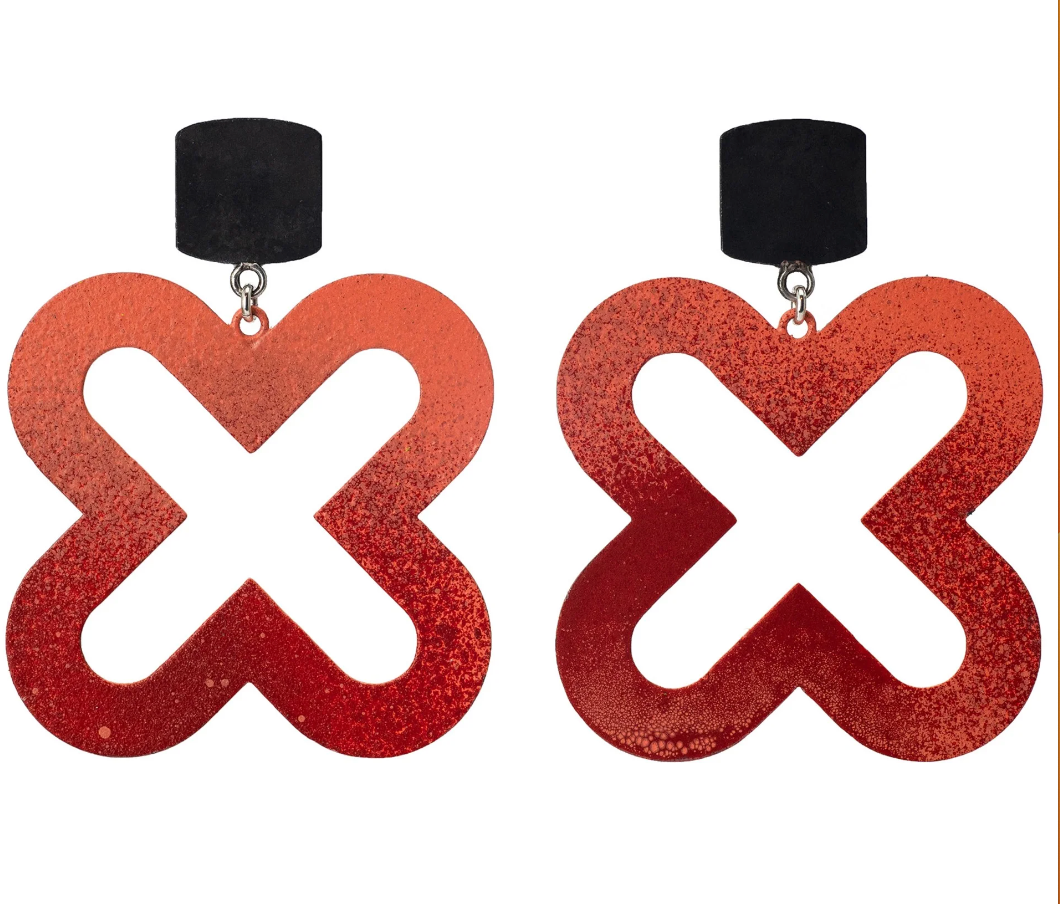 Ben Cooke-Akaiwa Red X Drop Earrings