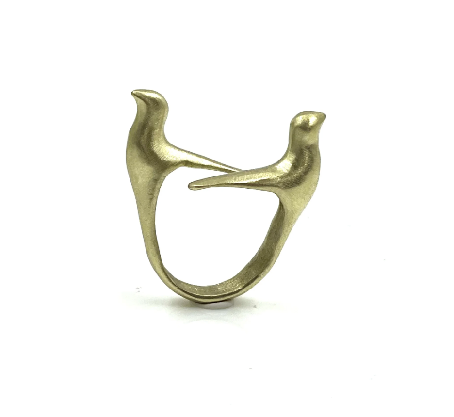 Blackwing Metals Gold Tone Double Bird Head Open Ring