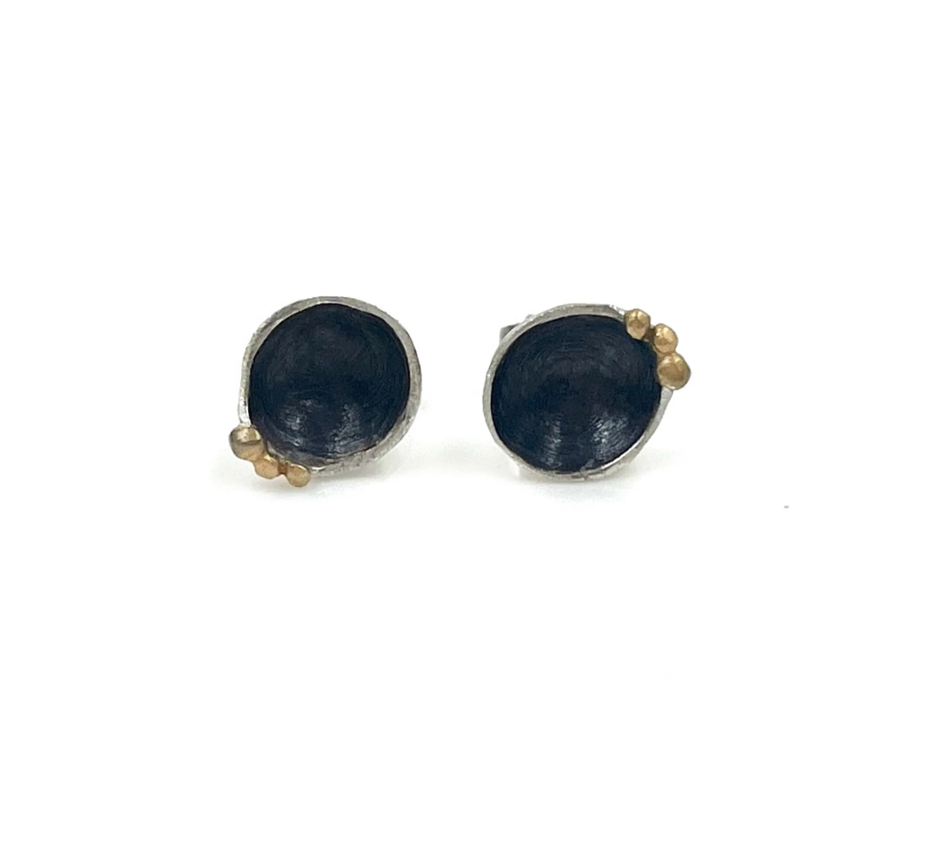 Blackwing Metals Oxidized Vessel with Three Bubbles Post Earrings