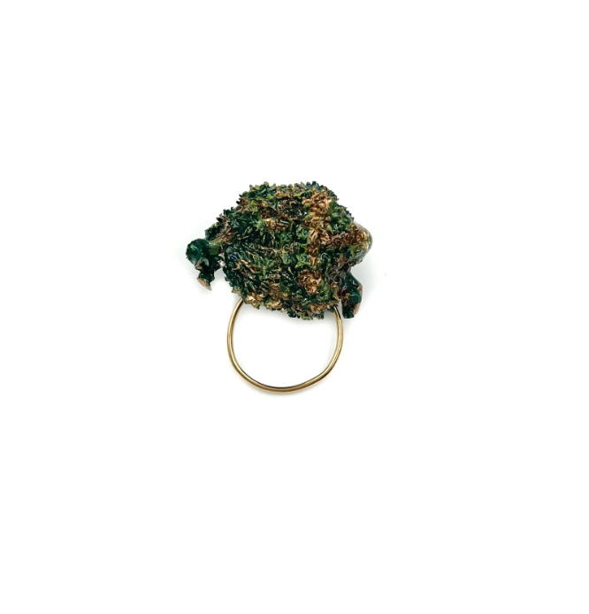 Preserved natural materials, pigments, leaf metal, shell golf, 14K gf