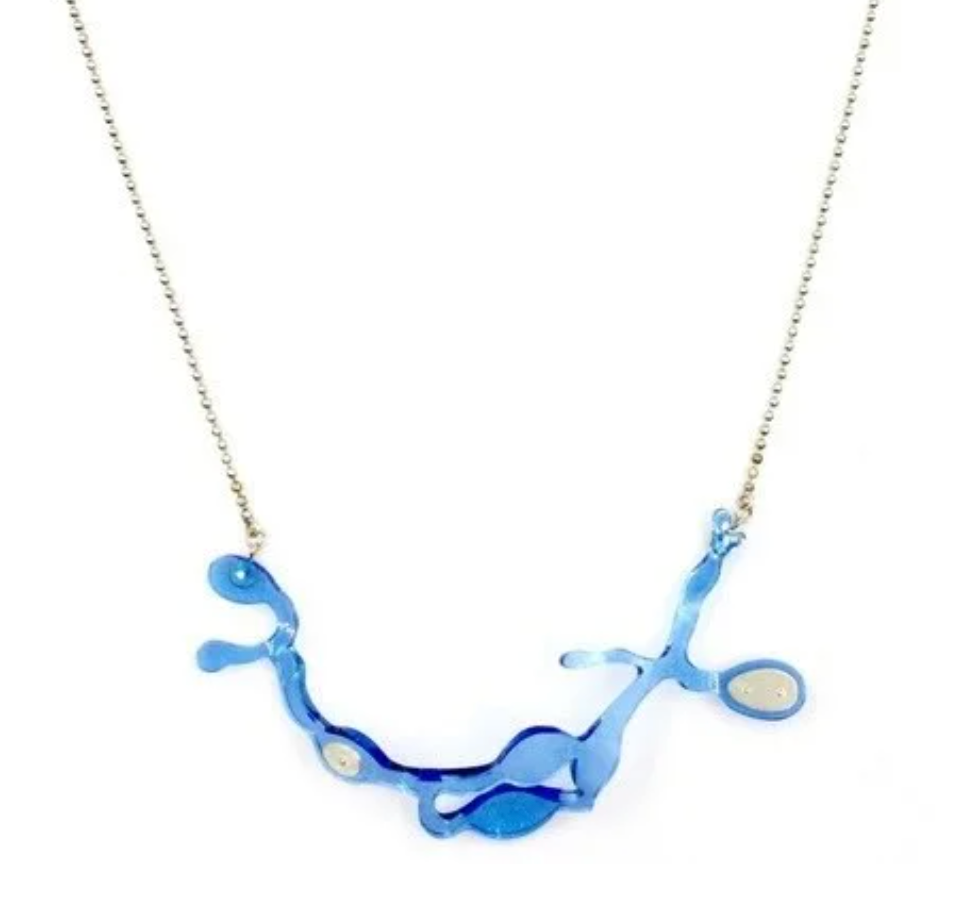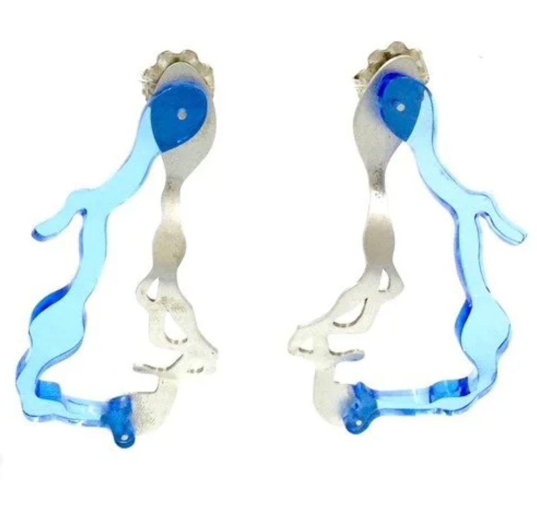 Denisa Patti Big Brushed Silver Blue Acrylic Stud Earrings