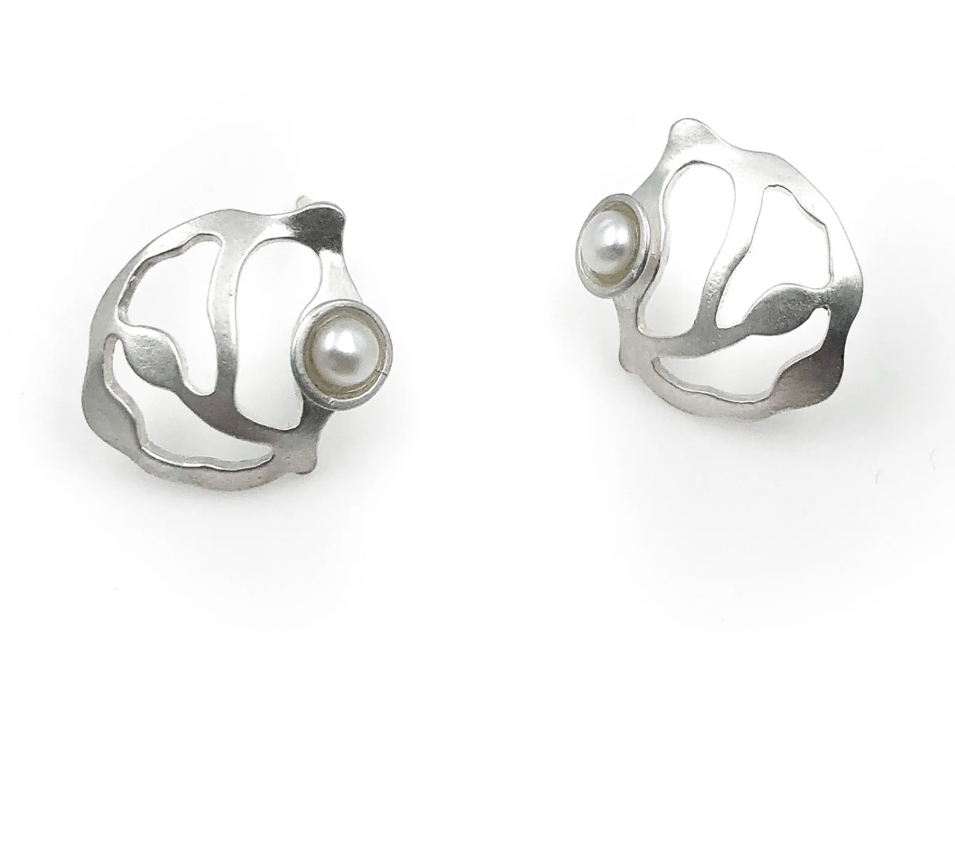 Denisa Piatti Silver Seaweed Cluster Pearl Earrings