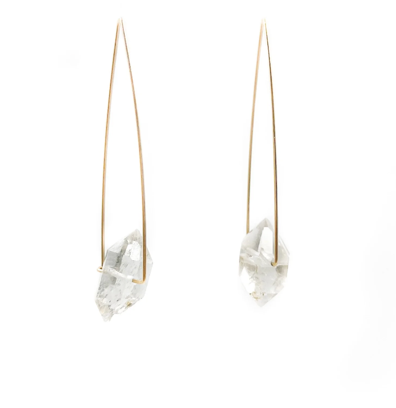 Aimee Petkus Gold Herkimer Triangle Hoop Earrings