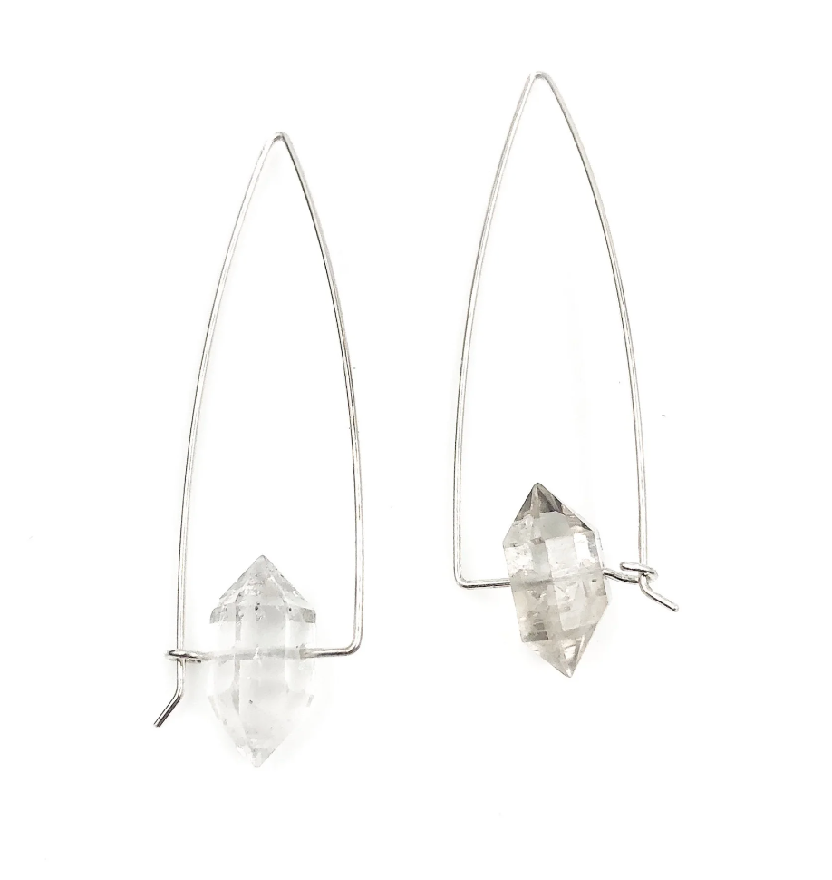 Aimee Petkus Silver Herkimer Triangle Hoop Earrings