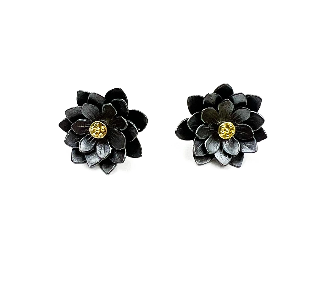 Elise Moran Oxidized Silver and 18K Gold Lotus Post Earrings