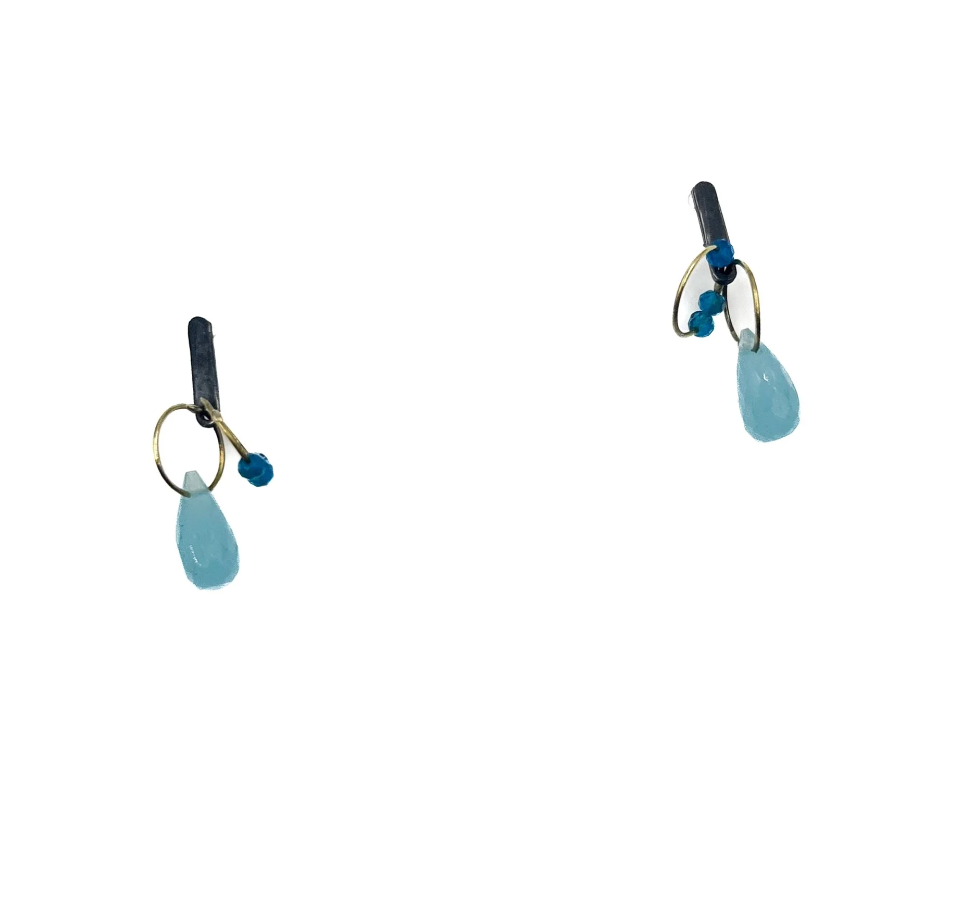 Oxidized Sterling Silver, Blue Chalcedony, Apatite, 18K