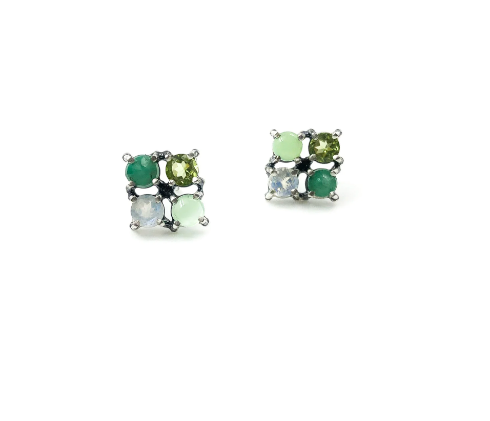 Emerald, Rainbow Moonstone, Peridot, Chalcedony, Sterling Silver