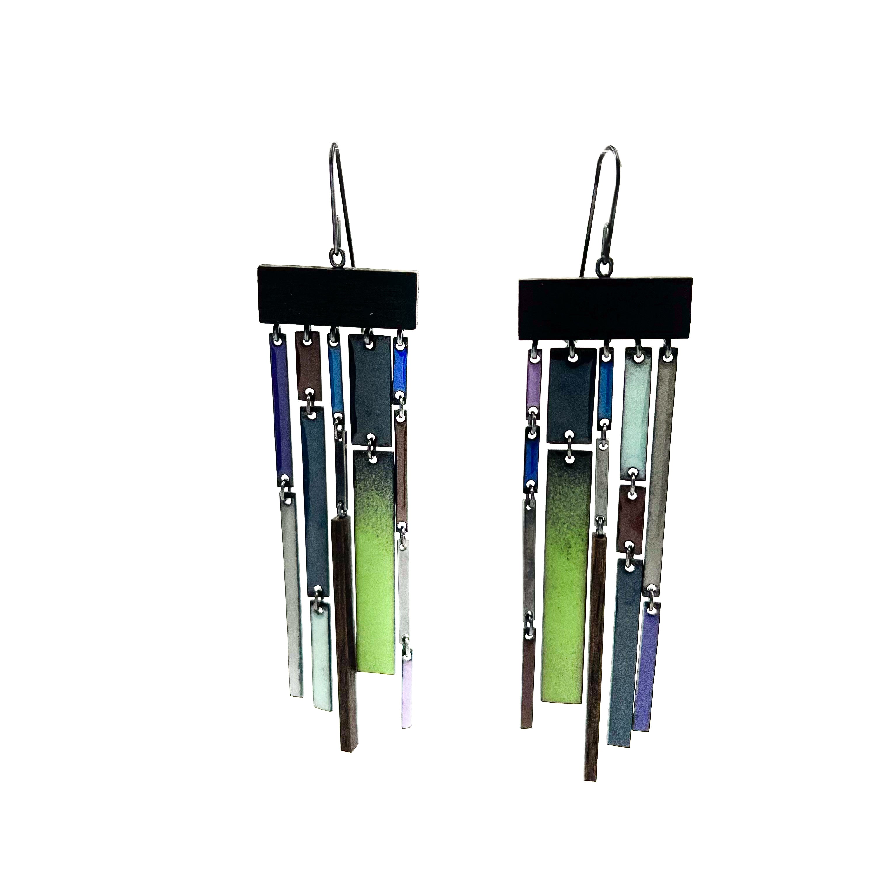 Vitreous enamel on steel, Oxidized Sterling Silver, Carved Walnut Wood, One of a Kind Creation by Julia Turner