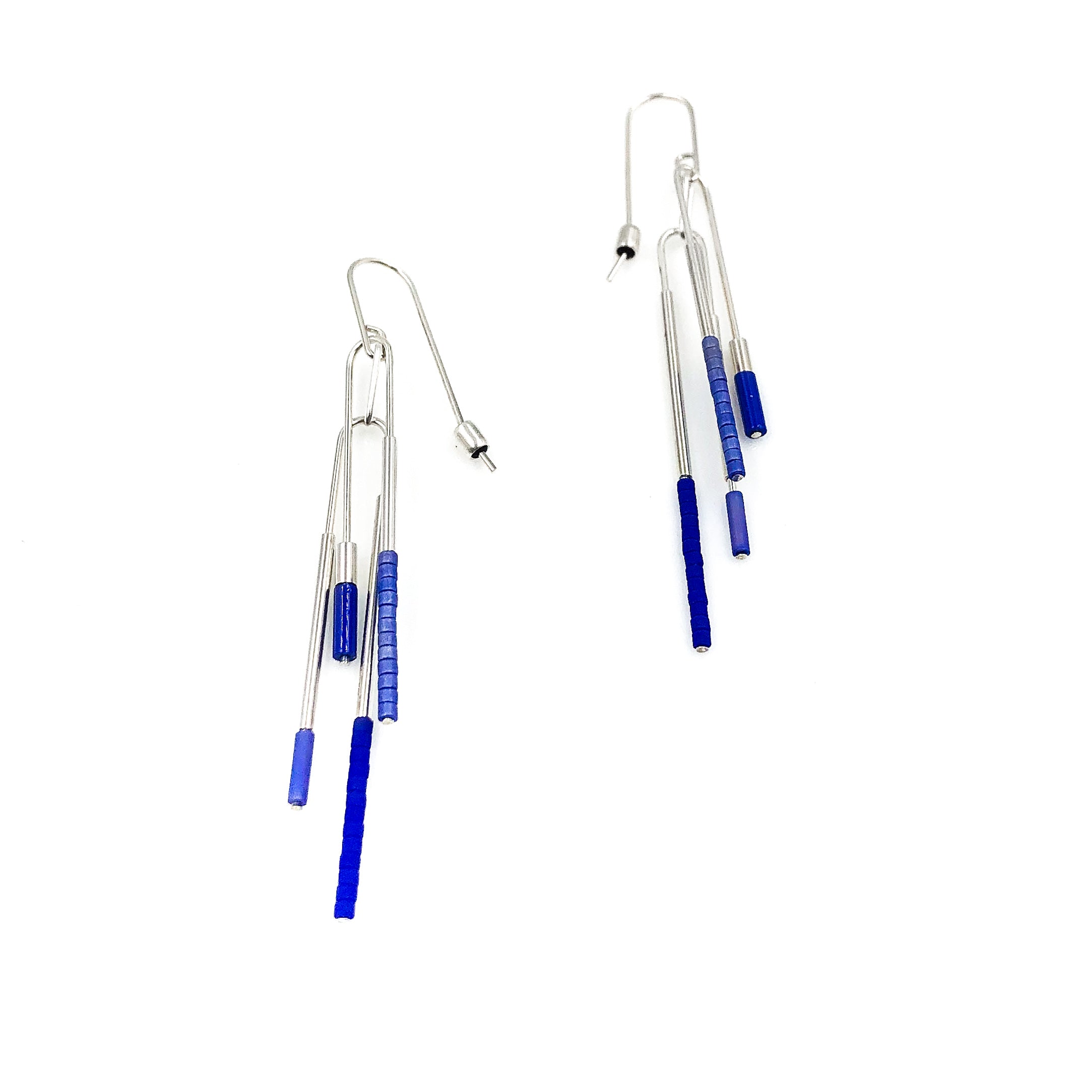Sterling Silver, Glass Beads, Tones of cornflower blue and cobalt