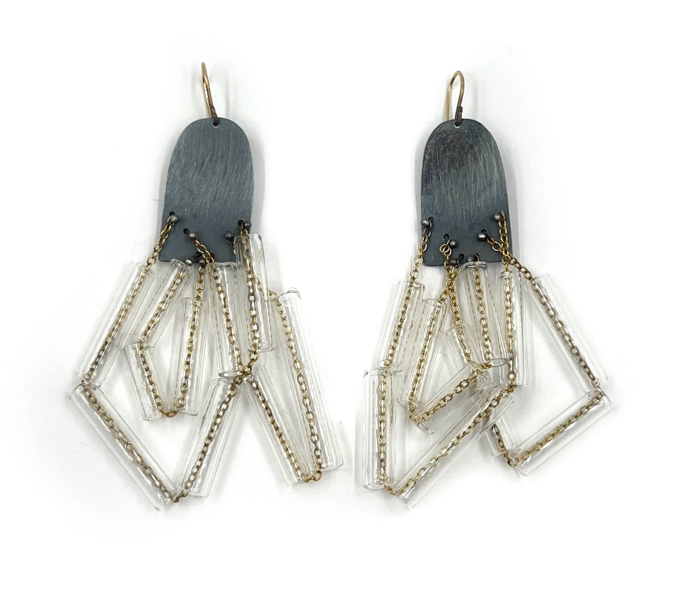 Karen Gilbert Earrings with Gold-Tone Chains and Glass