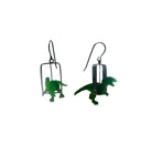 Hollow rectangle oxidized silver earrings with t-rex miniatures