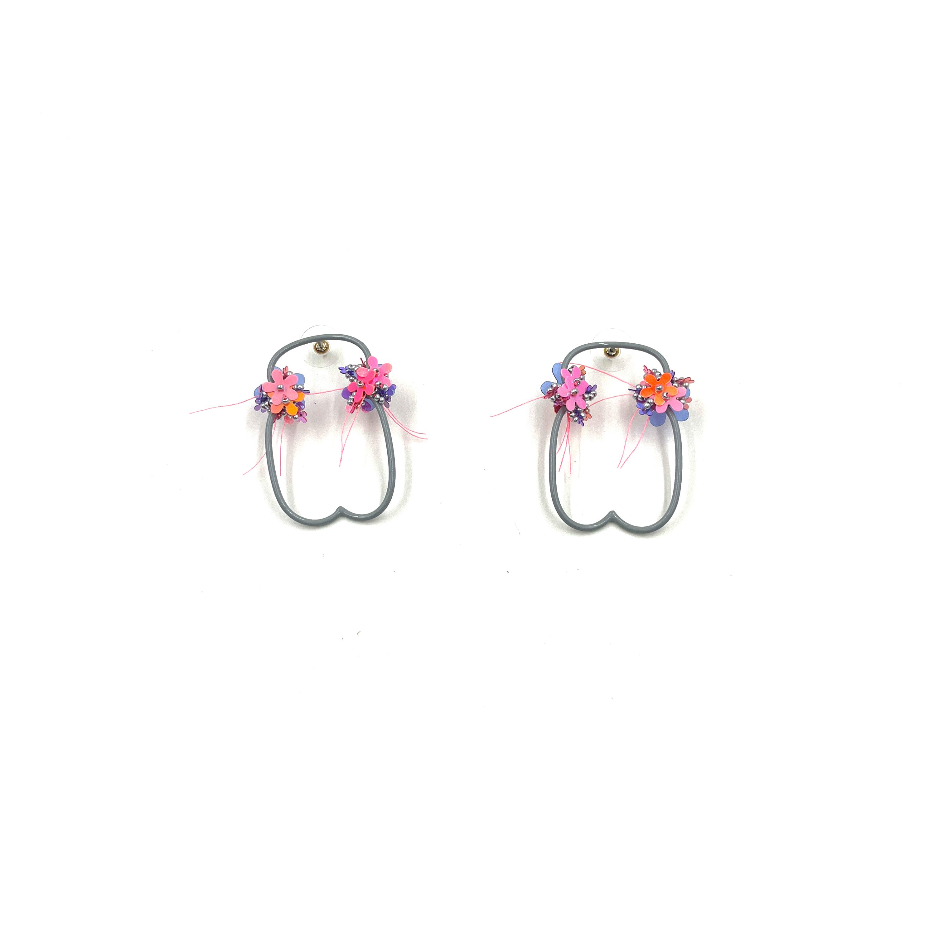 Lyndsay Rice Warm Pink Flower and Cool Grey Earrings