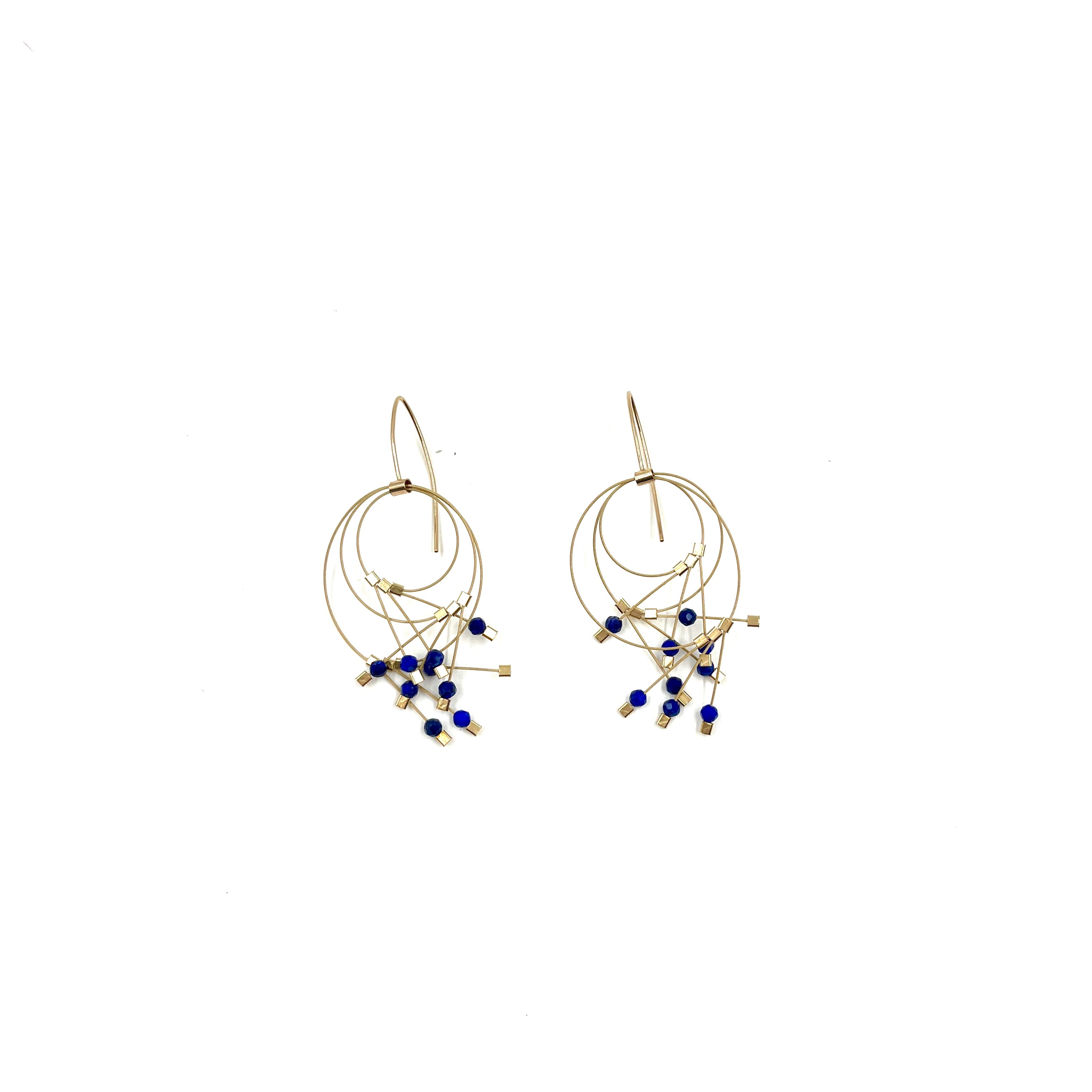 Meghan Patrice Riley Gold and Lapis Vertigo Hook Earrings