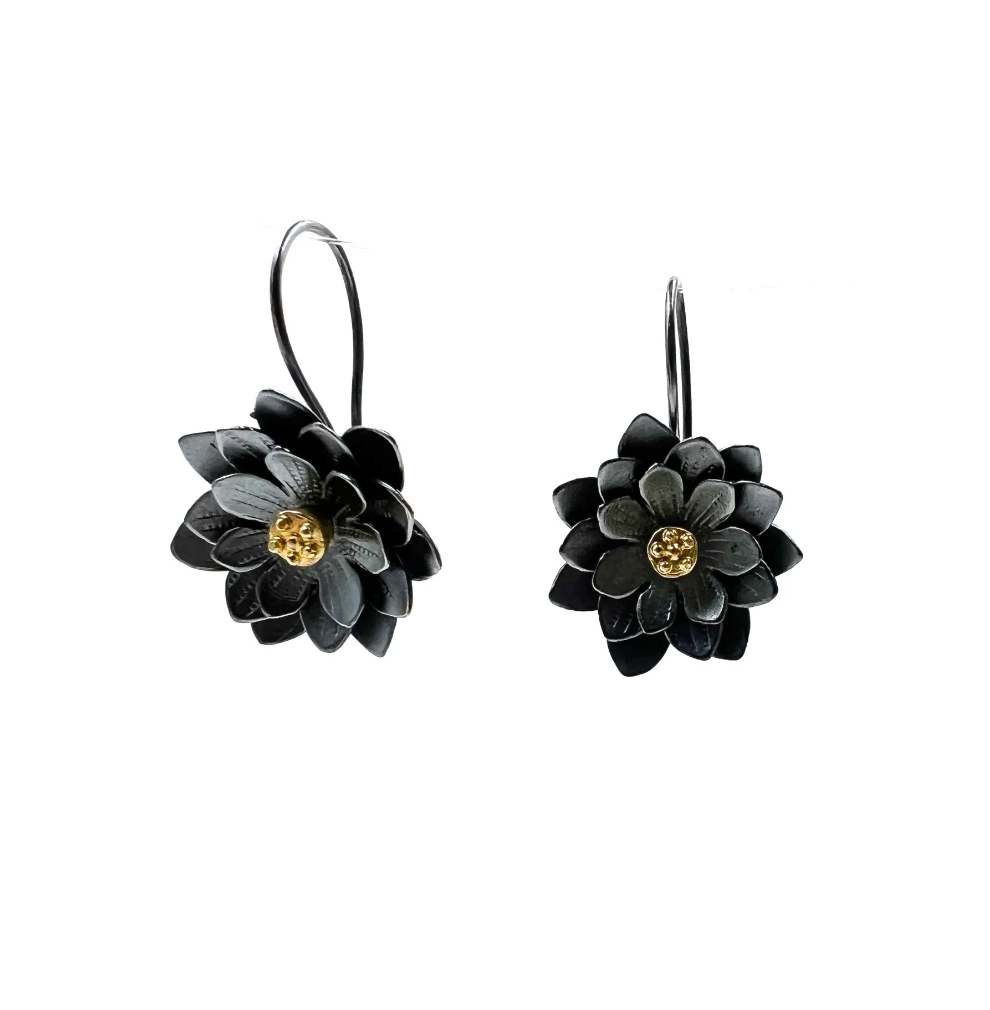 Elise Moran Oxidized and 18K Lotus Dangle Earrings