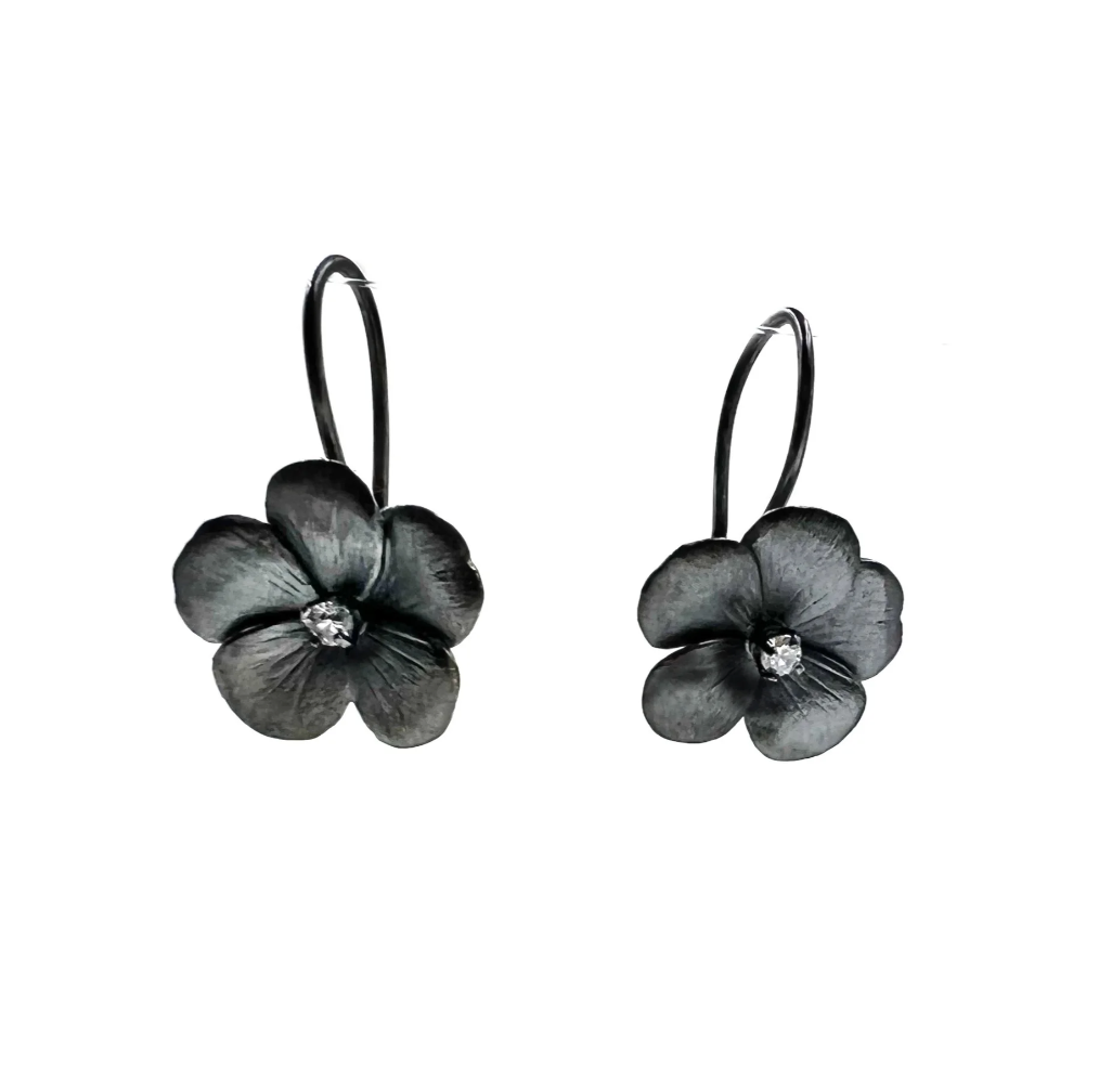 Elise Moran Oxidized Silver & CZ Small Violet Dangle Earrings