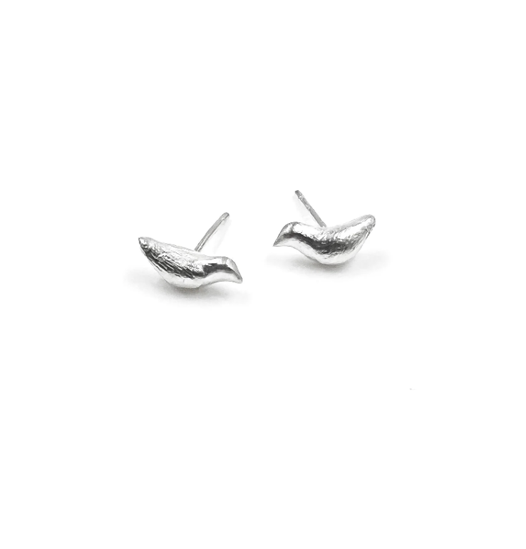 Elise Moran Silver Tiny Bird Stud Earrings