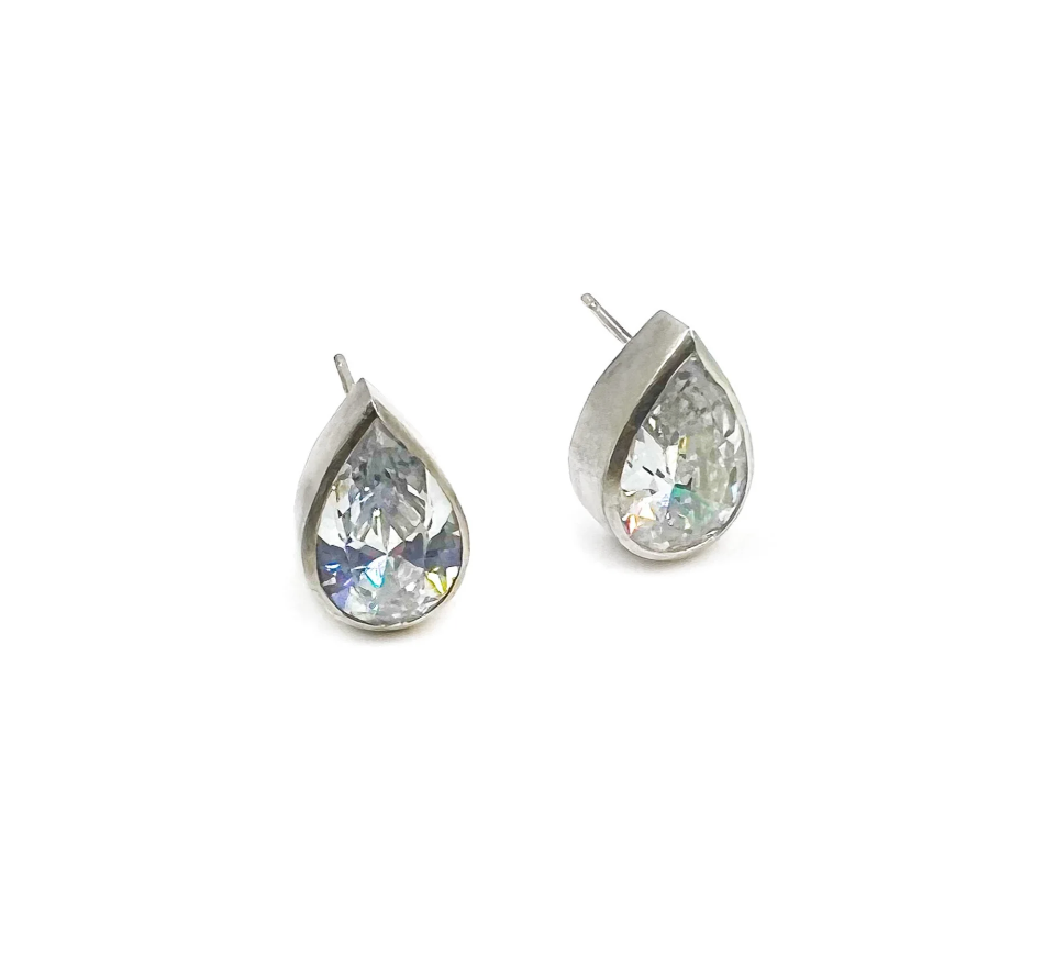 Elise Moran Large Teardrop CZ Stud Earrings