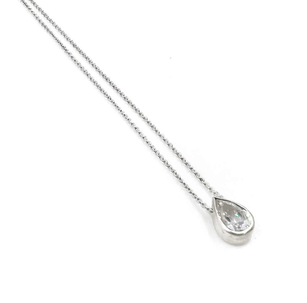 Elise Moran Silver Medium CZ Teardrop Pendant Necklace