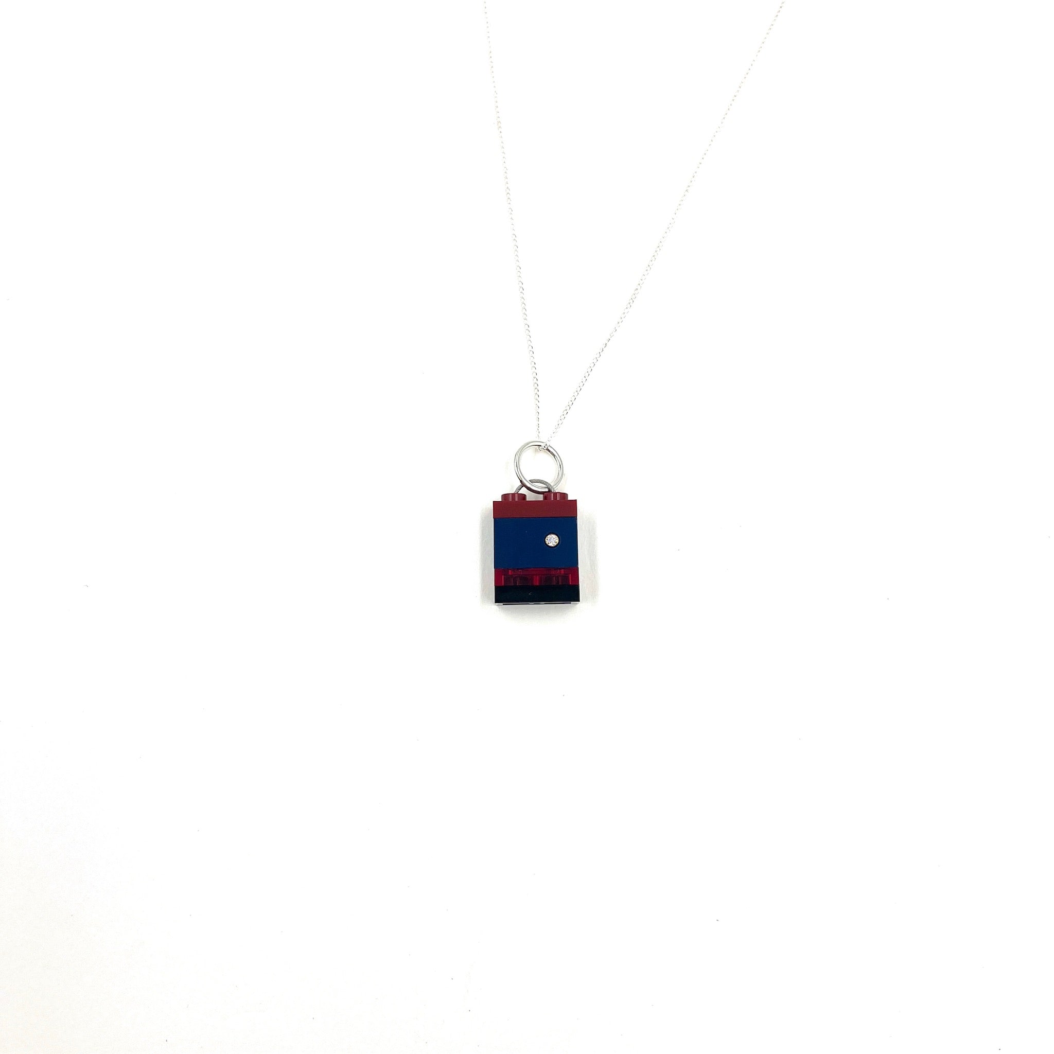 Repurposed LEGO, Cubic zirconia set in 14Ky, 18" Sterling silver chain