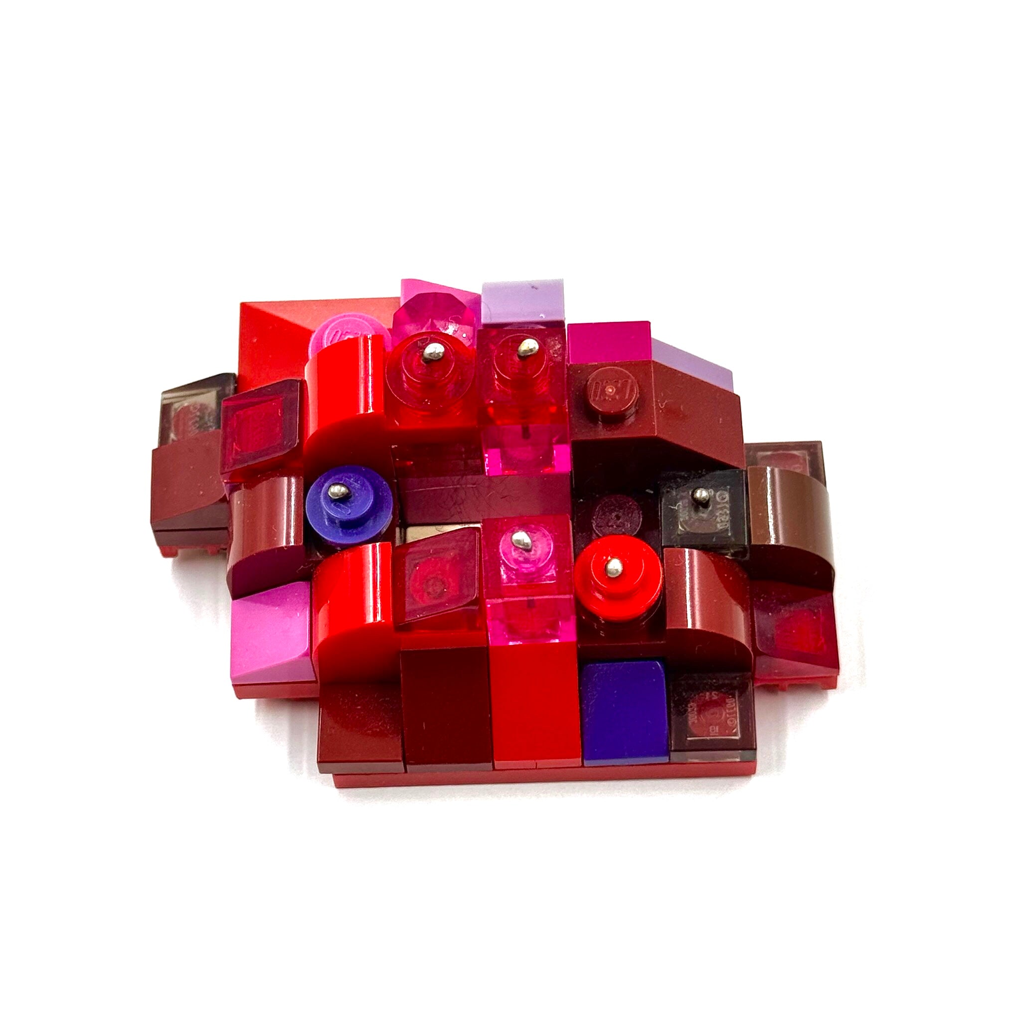 Repurposed LEGO, Argentium and Sterling Silver, recycled steel, steel pin