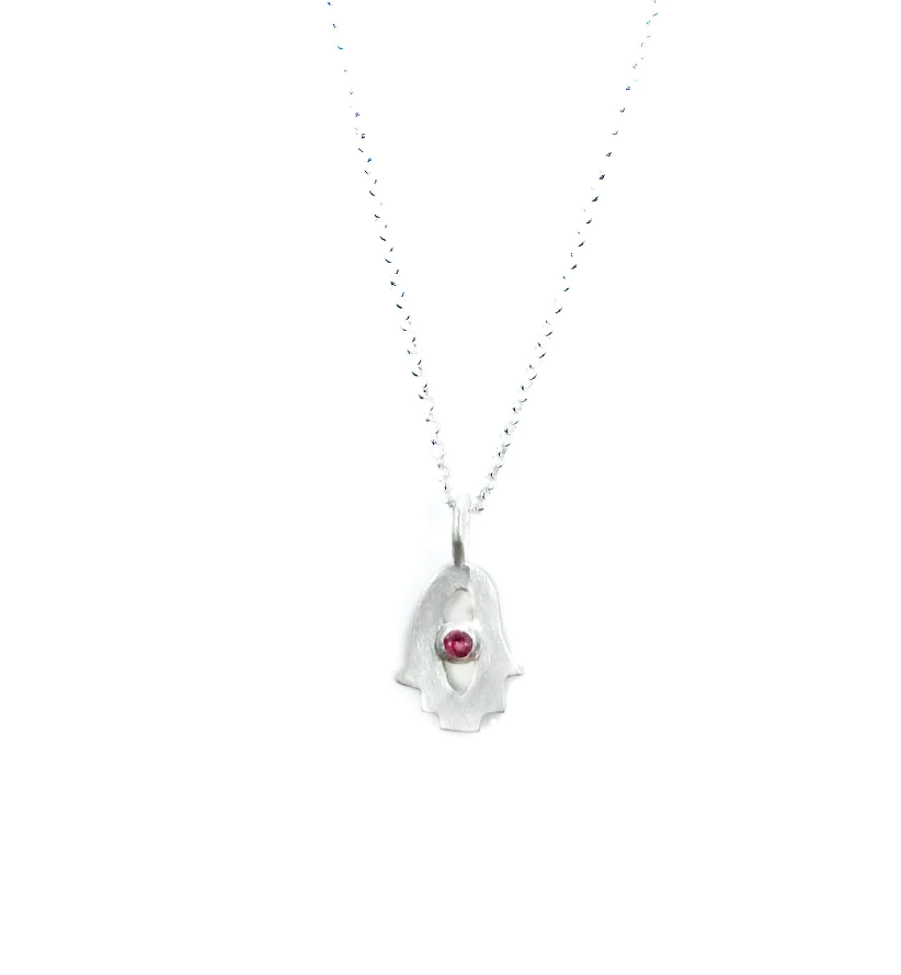 Emily Rosenfeld Hamsa Necklace with Pink Tourmaline