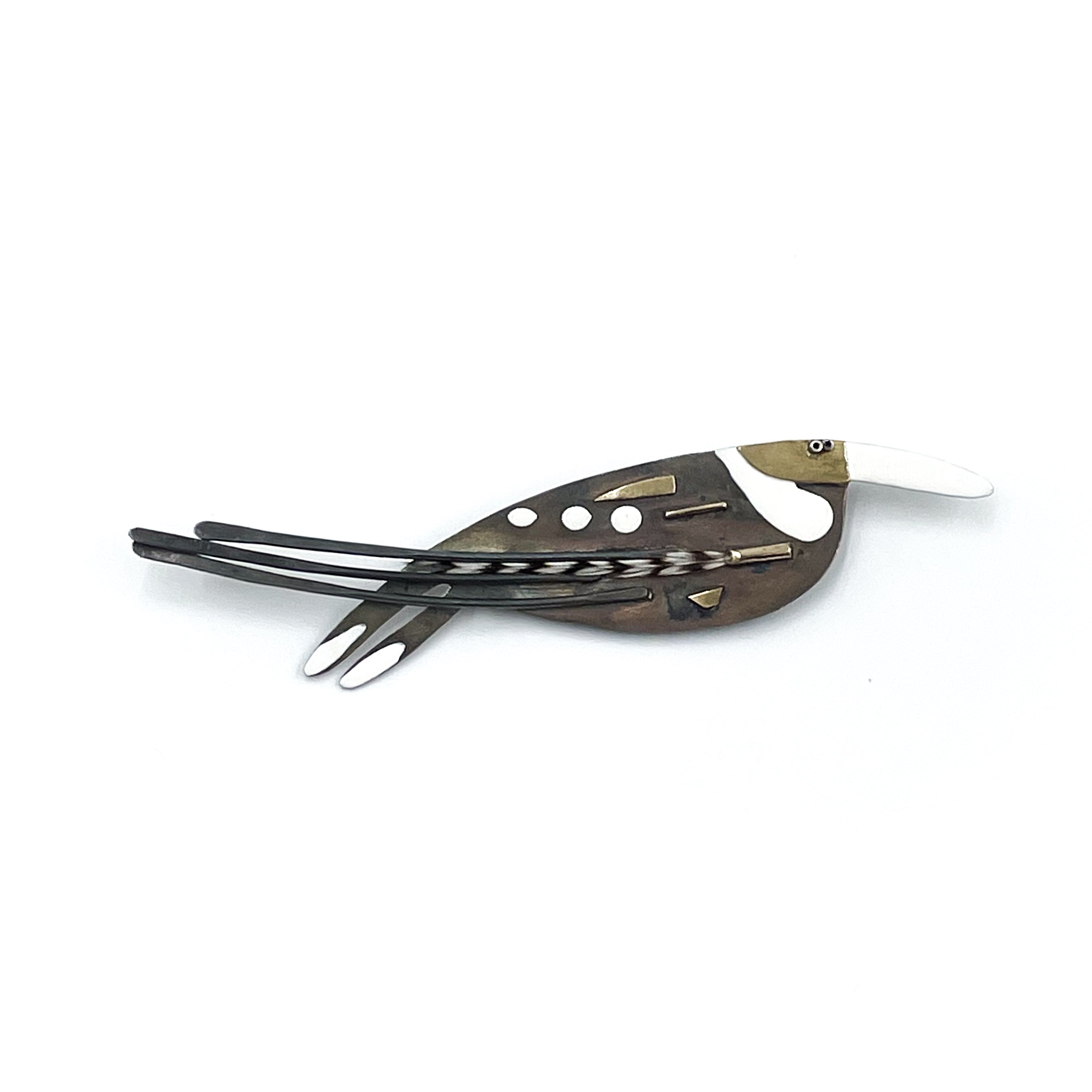 Oxidized Sterling Silver, Enamel, Steel Pin stem and catch, Feather