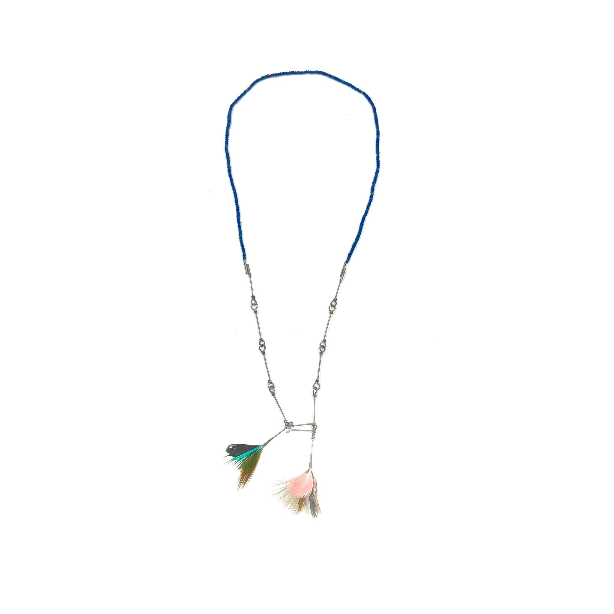 Gabrielle Gould Stone Thread Lariat Necklace - Lapis Lazuli and Feathers
