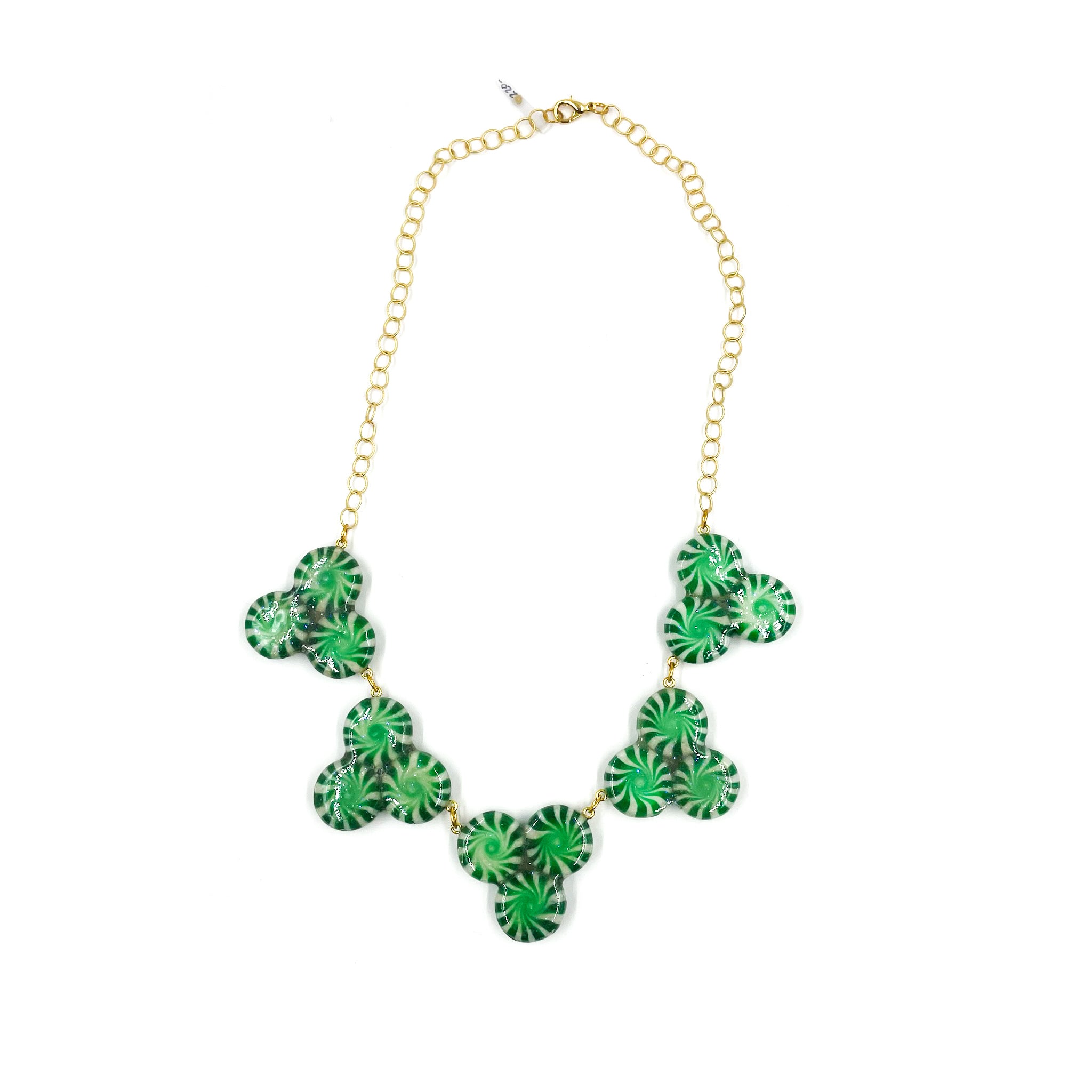 Real Mint candies dipped in holographic resin with 14K Gold fill chain and elements. A special One-of-a-kind necklace made just for our exhibition Celebrate and perfect for your next holiday event.