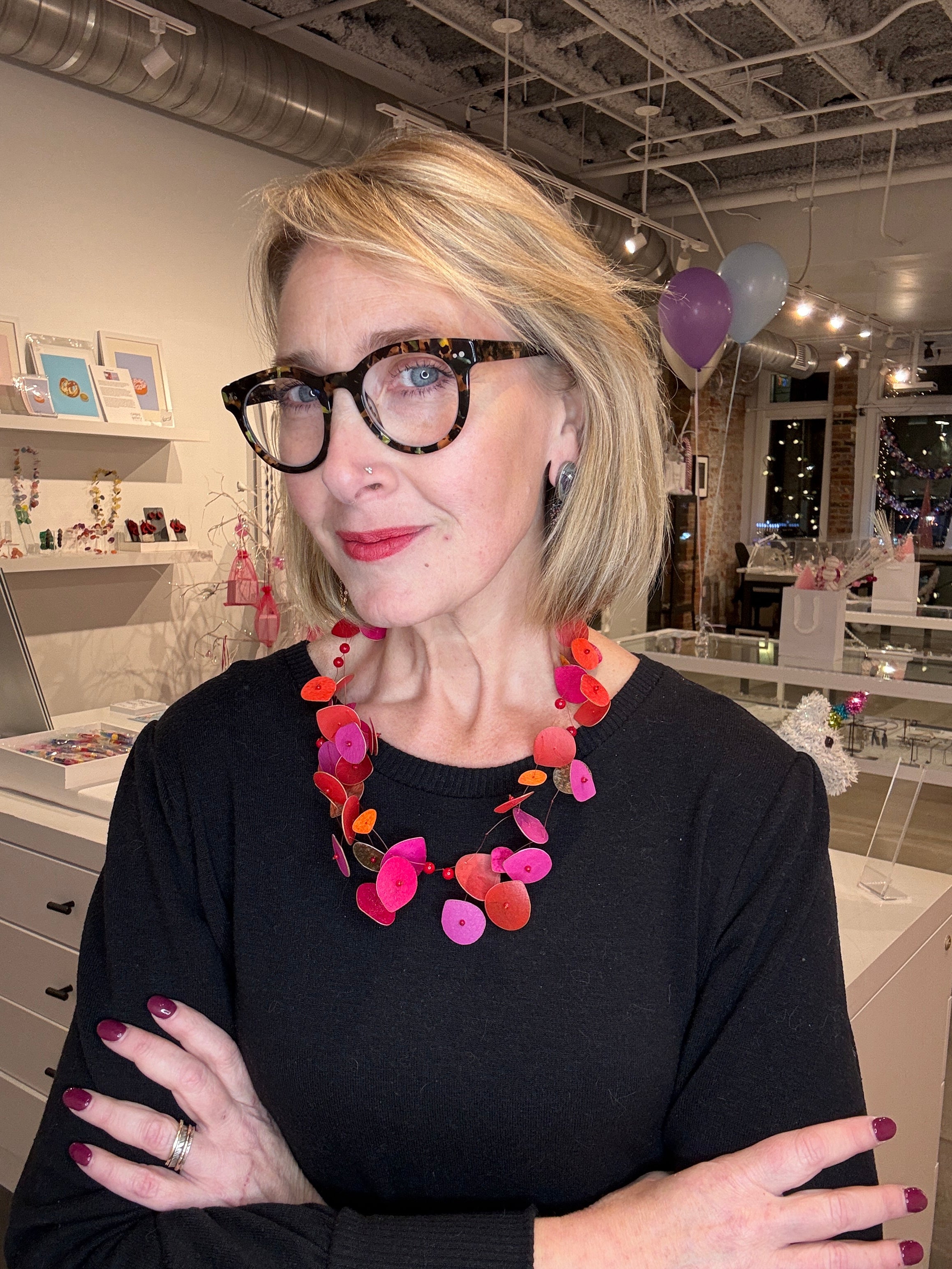 Hilde Janich Coral and Pink Parchment Necklace