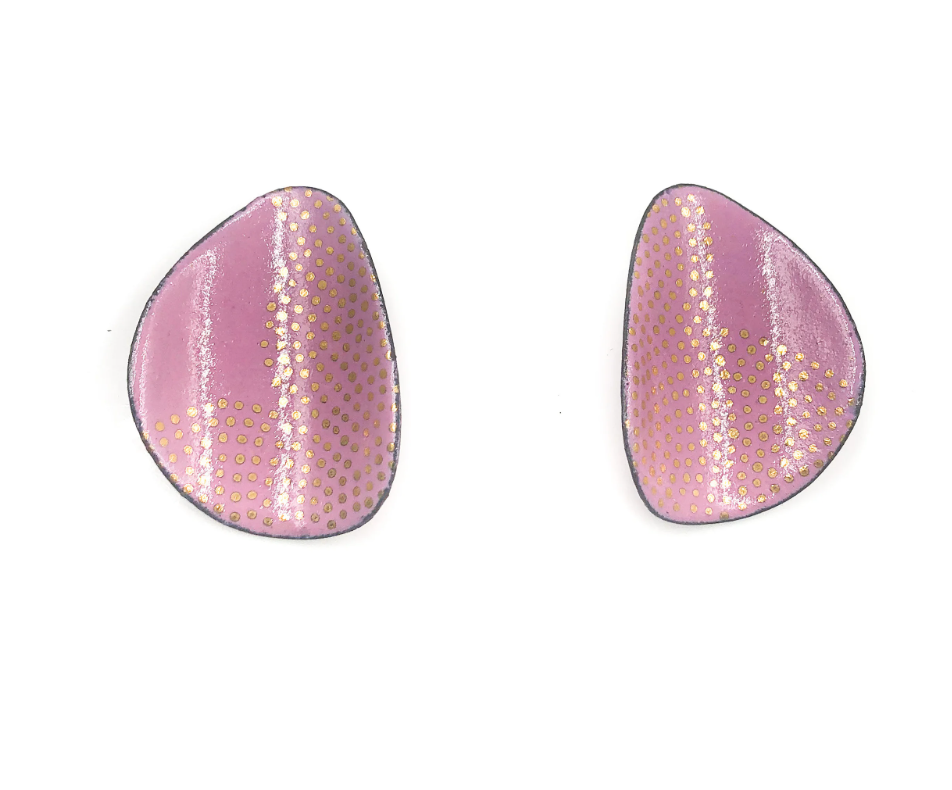 Vitreous enamel and gold lustre on steel, Sterling Silver posts