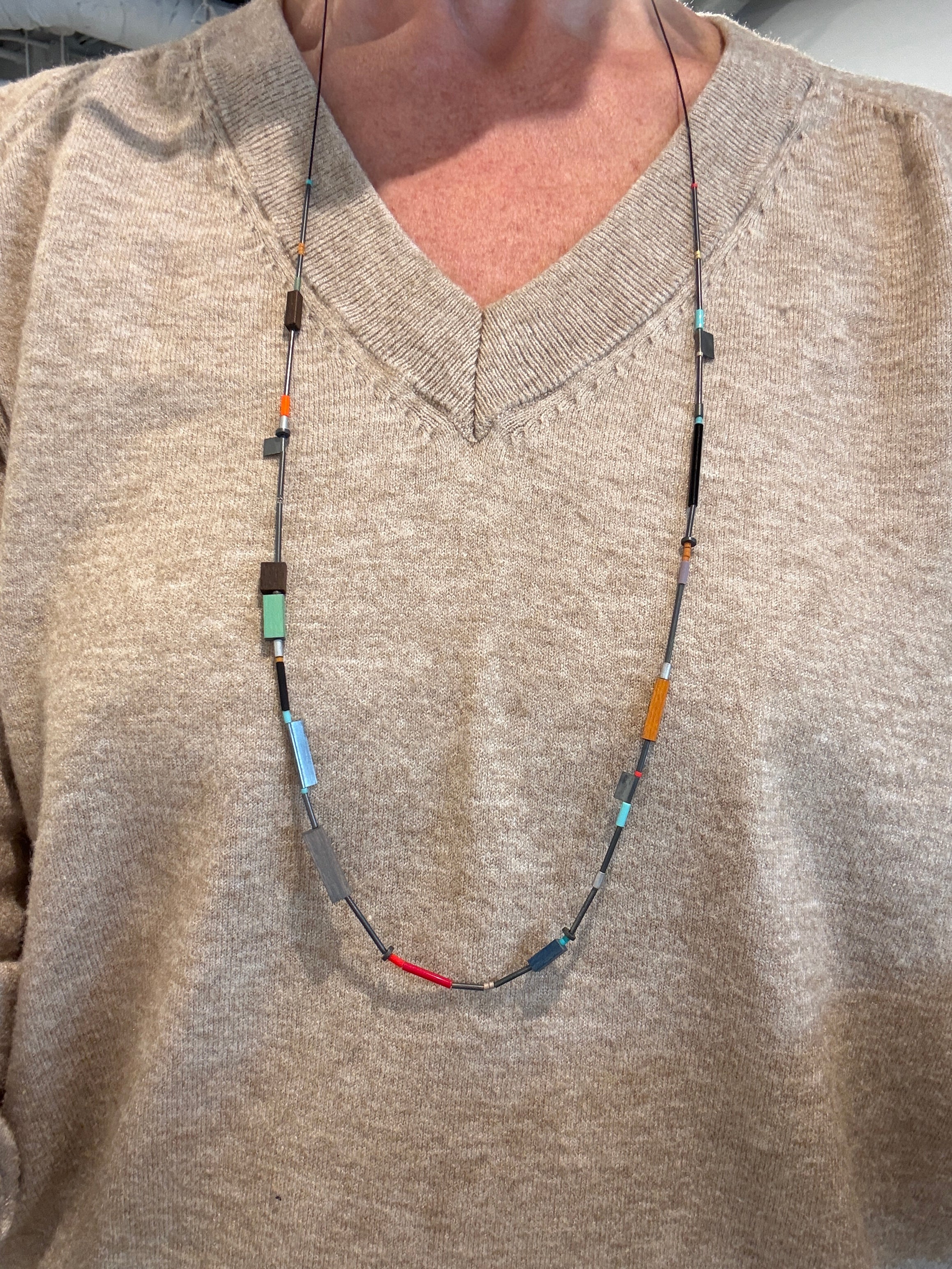 Oxidized sterling silver, Czech glass beads, Japanese glass Delica beads, stone beads, wood, vintage French steel cut beads. silk