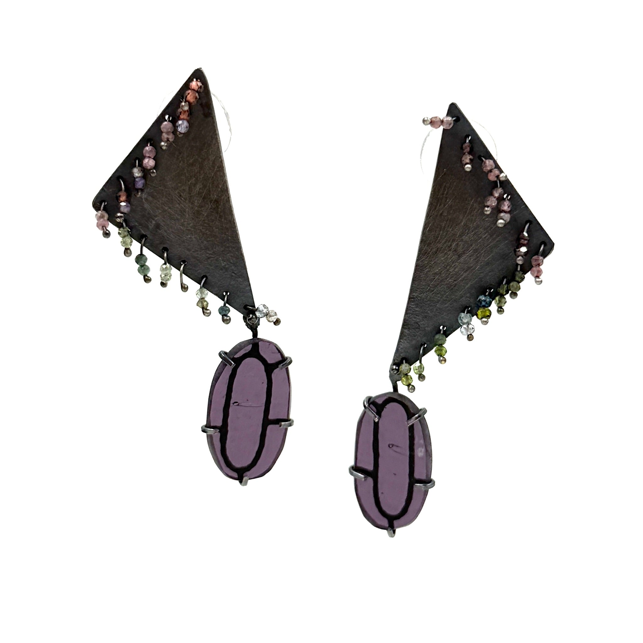 Karen Gilbert Purple Glass and Tourmaline Earrings