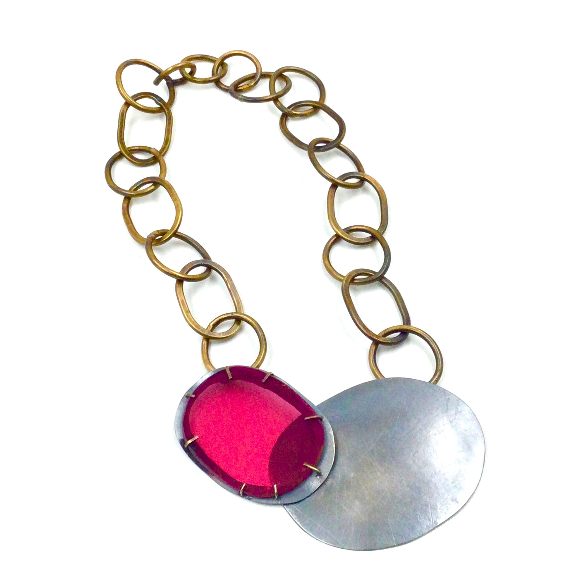 18” long chain, metal and glass piece together measures 4.5” x 2.5”