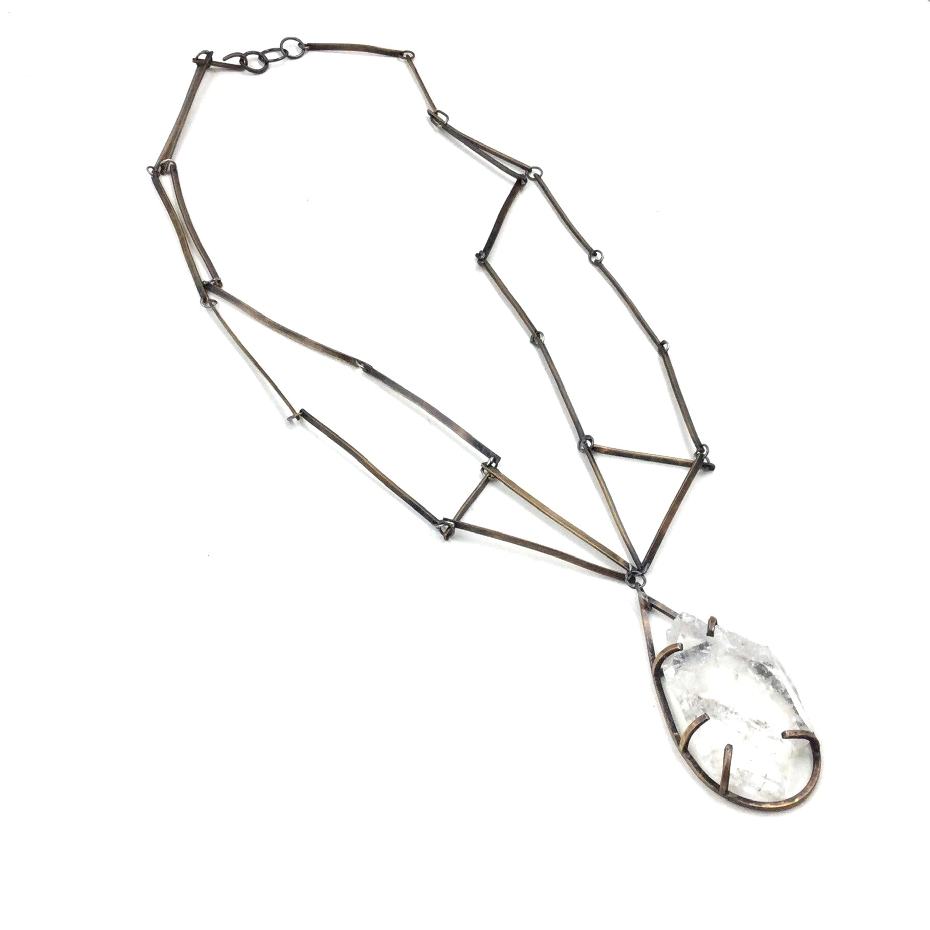Bronze and faceted crystal with structured chain