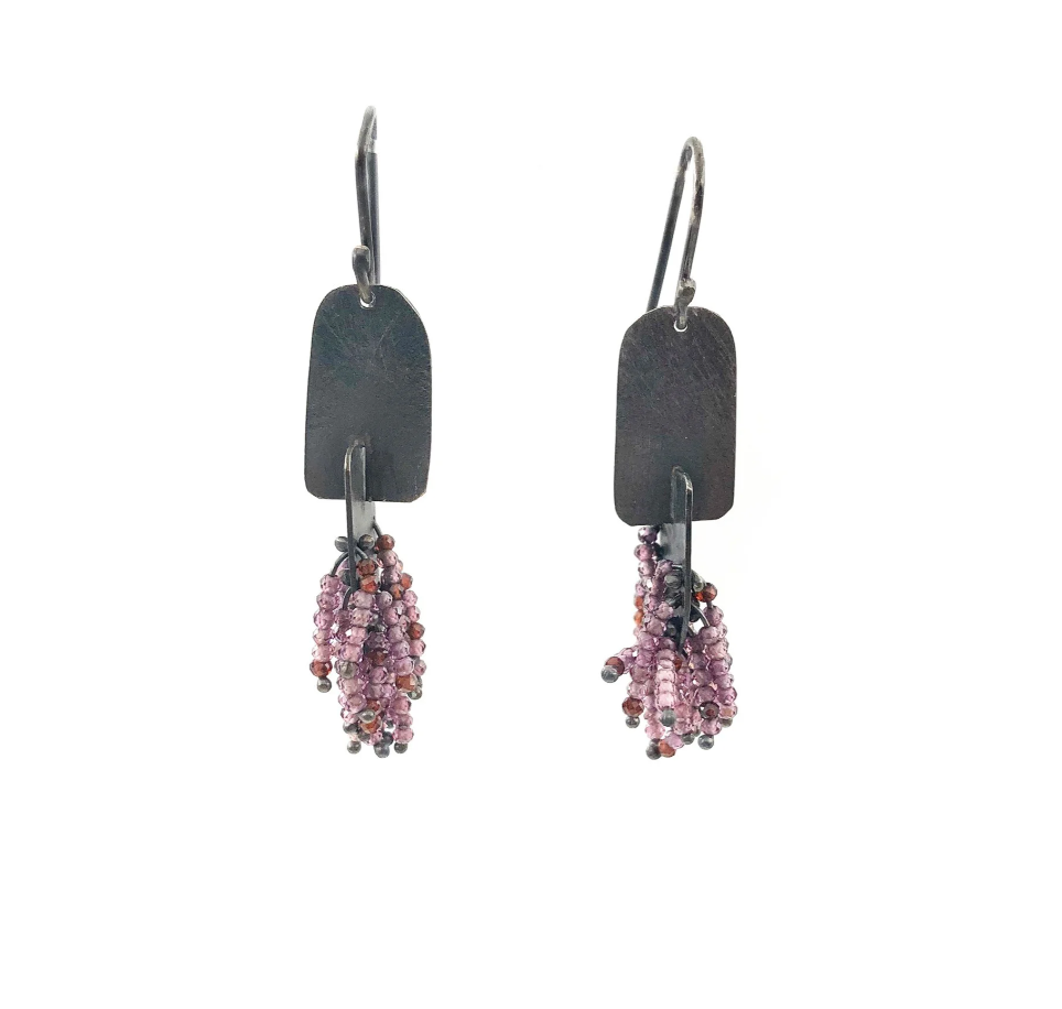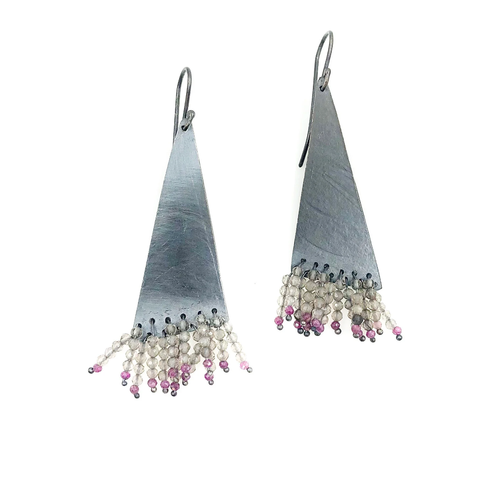 Karen Gilbert Long Triangle Labradorite & Garnet Fringe Earrings