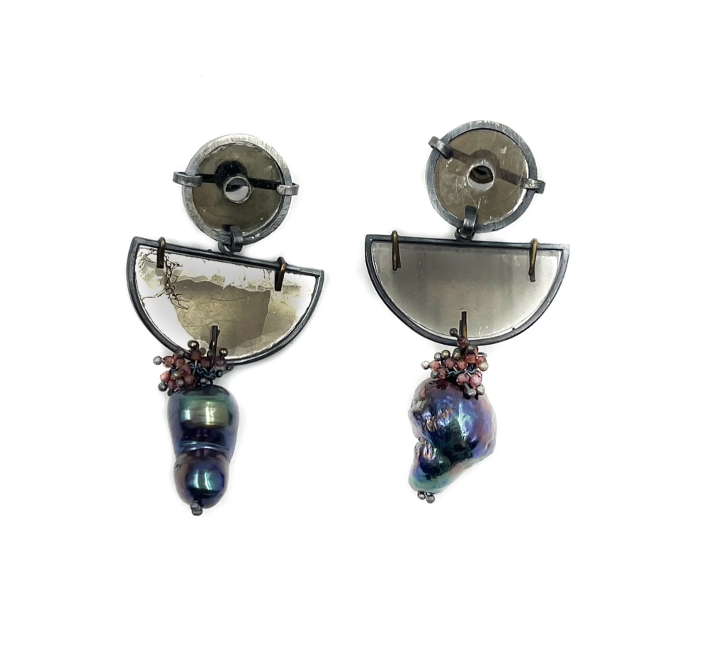 Karen Gilbert Oval Post Earrings With Quartz Beads
