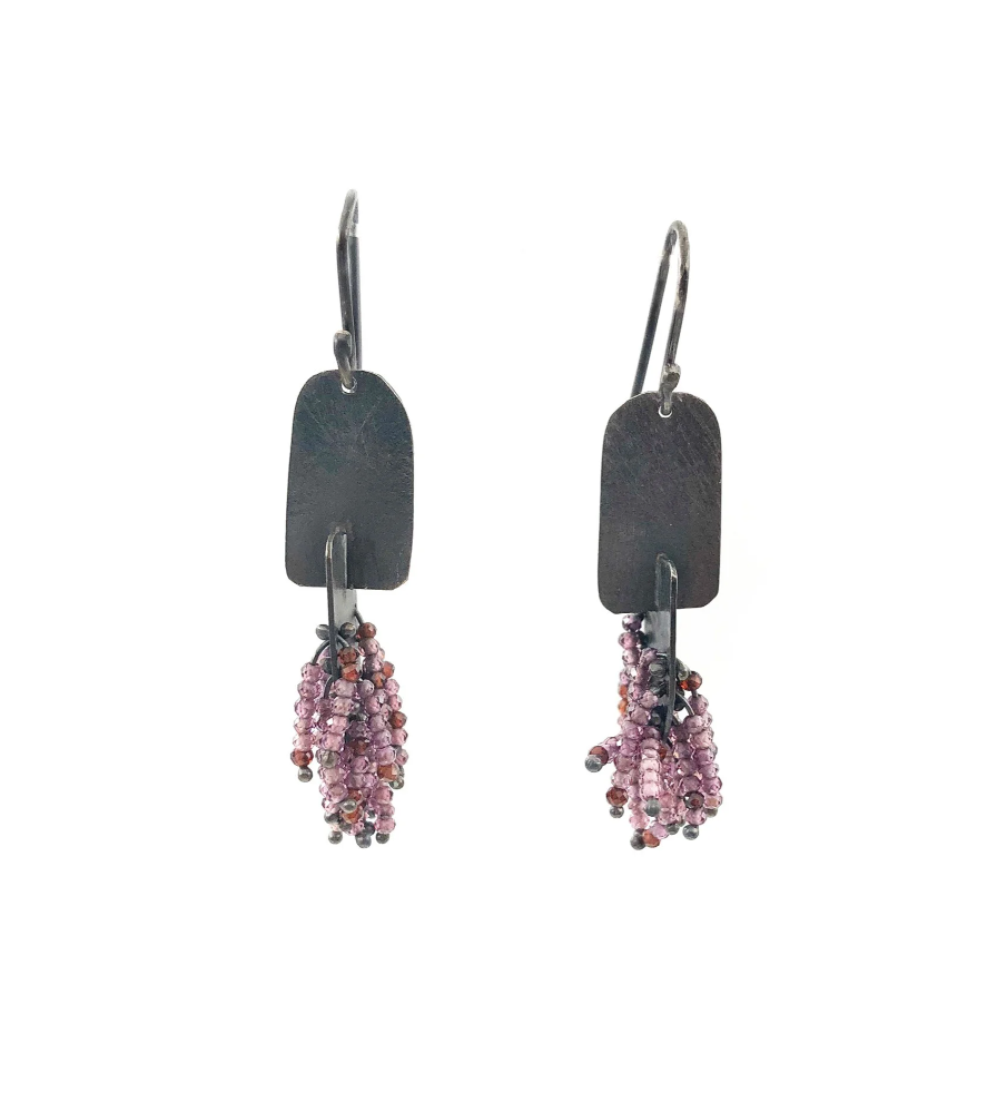 Karen Gilbert Lapis and Garnet Loop Earrings