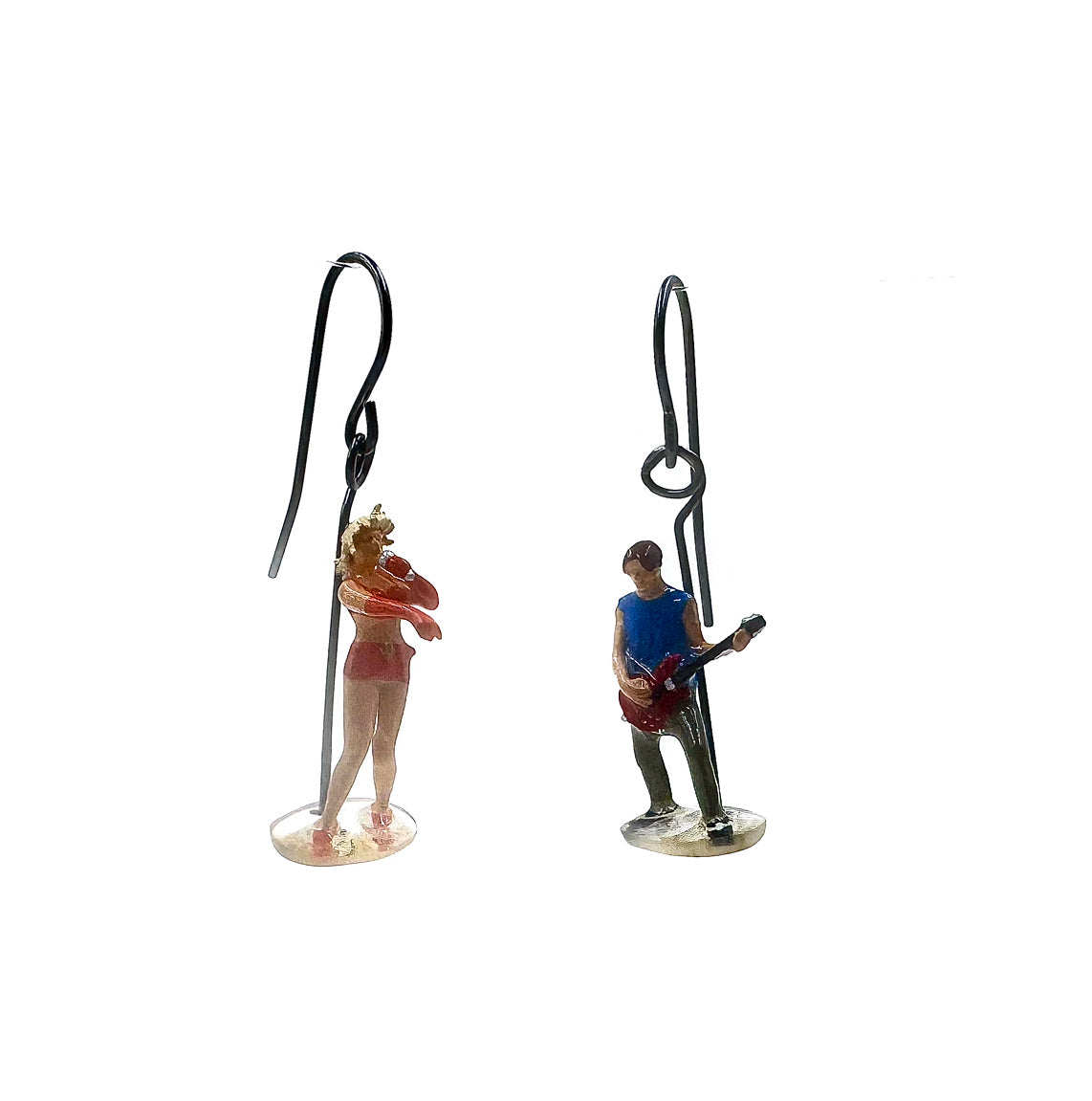 Oxidized silver earrings with concert performer miniatures