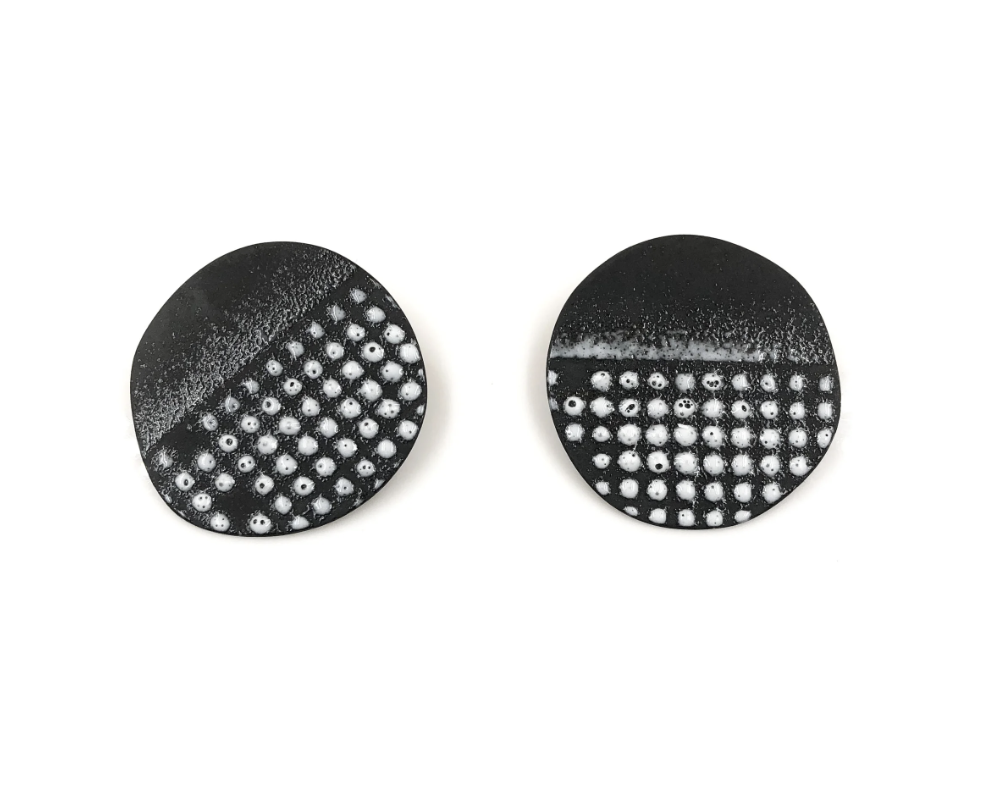 Maia Leppo Enamel Grid Disc Stud Earrings