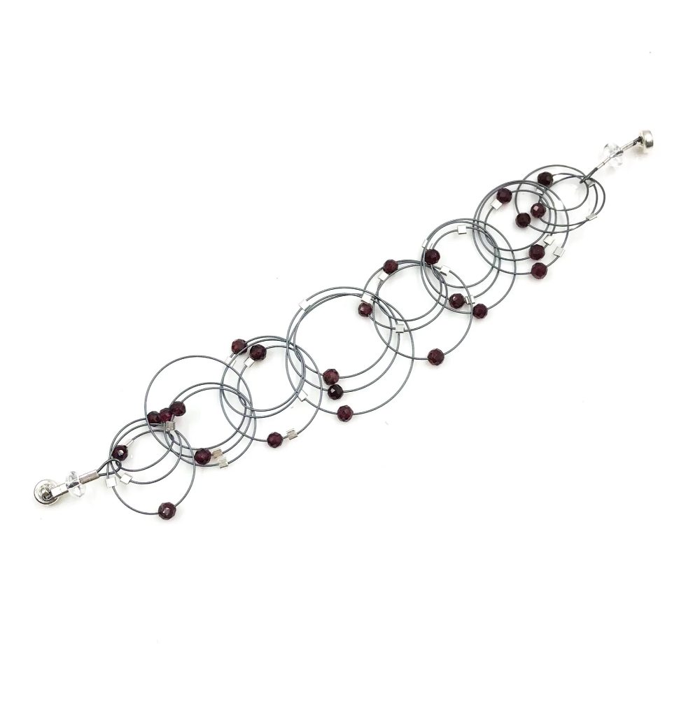 sterling silver, Garnet stones, Nylon coated stainless steel cable, magnetic clasp